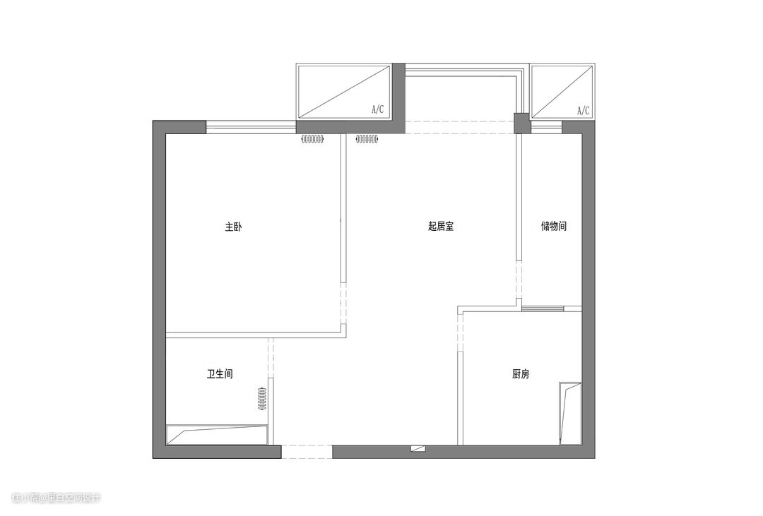 房子属于全北向、单面采光,因为小区内楼体分布呈“回”字形,导致唯一的进光面被前楼遮挡,加上室内空间较封闭,采光受限,暗厨、暗卫使用体验感不佳;3.6m²的储物间满地杂物,利用率极低。