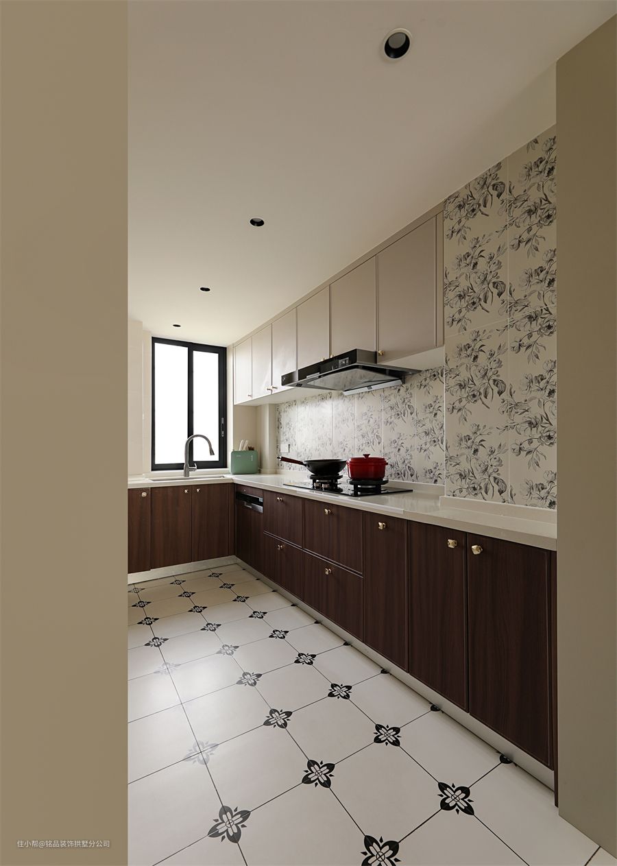 业主说厨房是她很喜欢的色调,花墙地砖美感度up up,上下柜门不同色营造出分明层次,又很好的将家里每寸空间都完美的利用起来了呢