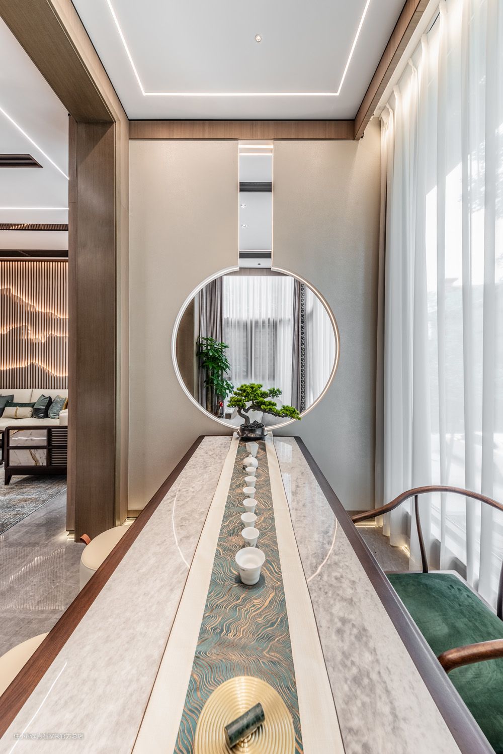 以摩登东方的空间语境,思考人与空间及人与人之间的关系,营造沉稳而不失灵性的人文空间肌理,东方美学与现代元素在此恰当的融合陈列。 在延续了传统人文情怀的同时,又符合当代人的美学居住向往,承载着文化信仰的场所精神,焕发新生。