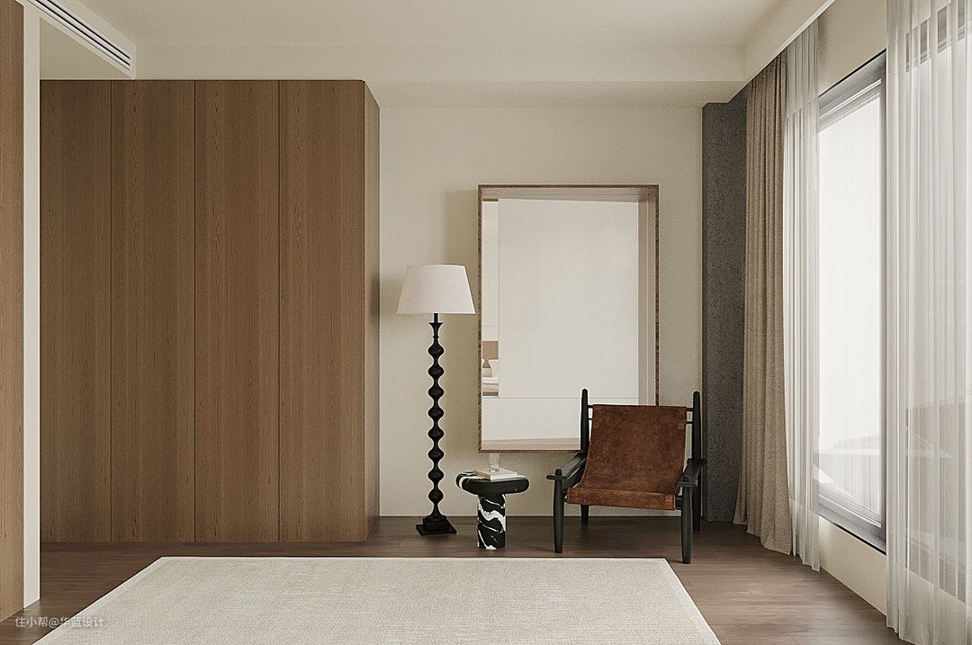 白墙能够增加空间感,同时让整个空间更加明亮、通透。大面积的米白色搭配胡桃木色,营造出一种简约而又温馨的氛围。 经典的自然配色+色彩鲜明的红蓝椅点缀,独特的造型和色彩搭配,使得空间更加生动有趣。红色的热情与白色的沉静,形成强烈的对比,让空间更具层次感。