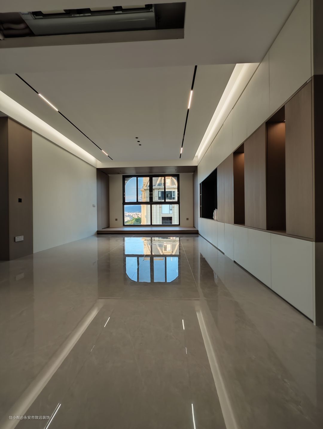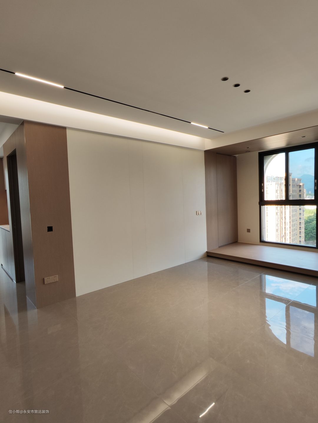 客厅做了无主灯设计,两条长磁吸轨道灯+反灯槽,增加了客厅的延伸感,让整个客厅空间更加开阔。电视背景墙做了整组电视柜,既增加了颜值又增加了收纳。