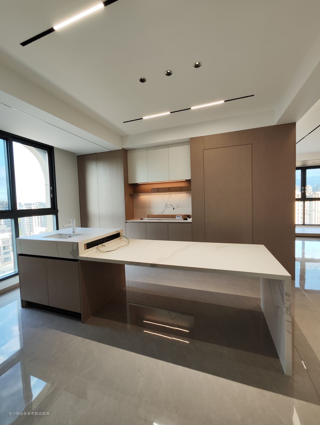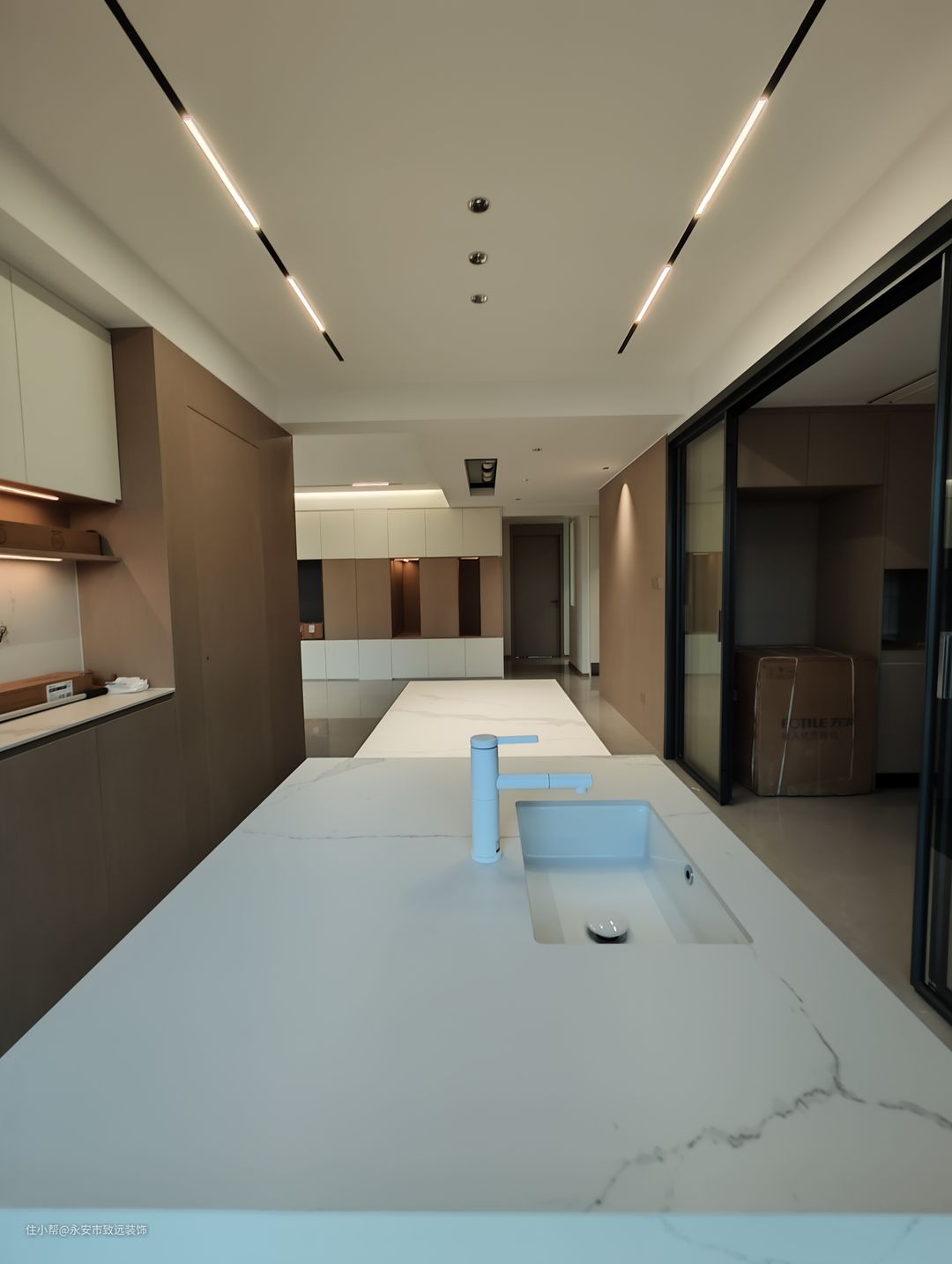 餐厅与厨房紧密相连,岩板岛台美观大气。