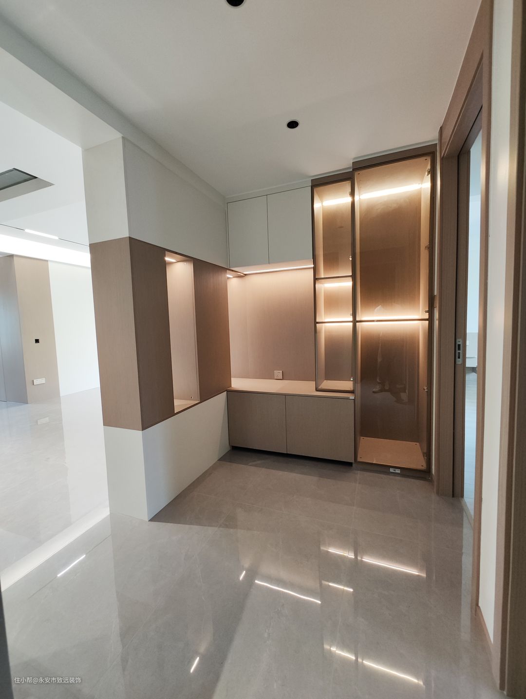 入户位置做了一组展示柜,摆上主人喜爱的摆件,搭配灯光,将是业主的最爱。