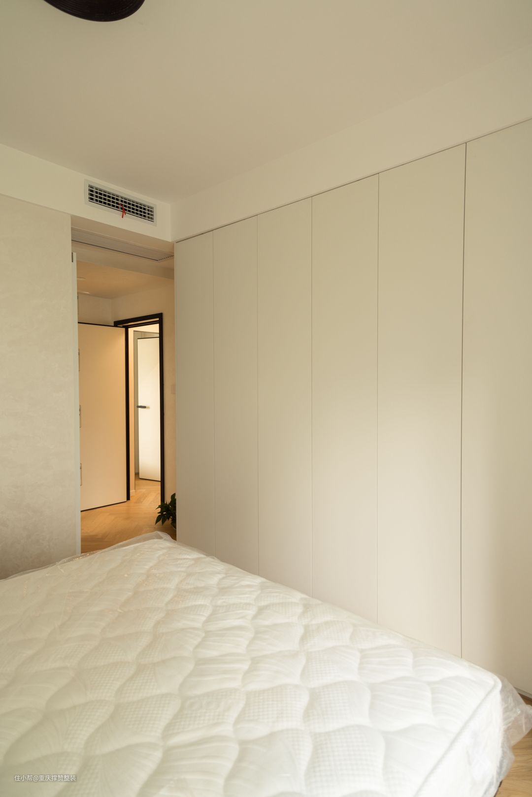 在小户型里面,储物功能是最大的痛点,我们在两个卧室都设计了一整面的极窄边框的柜子,将储物美学运用到极致。