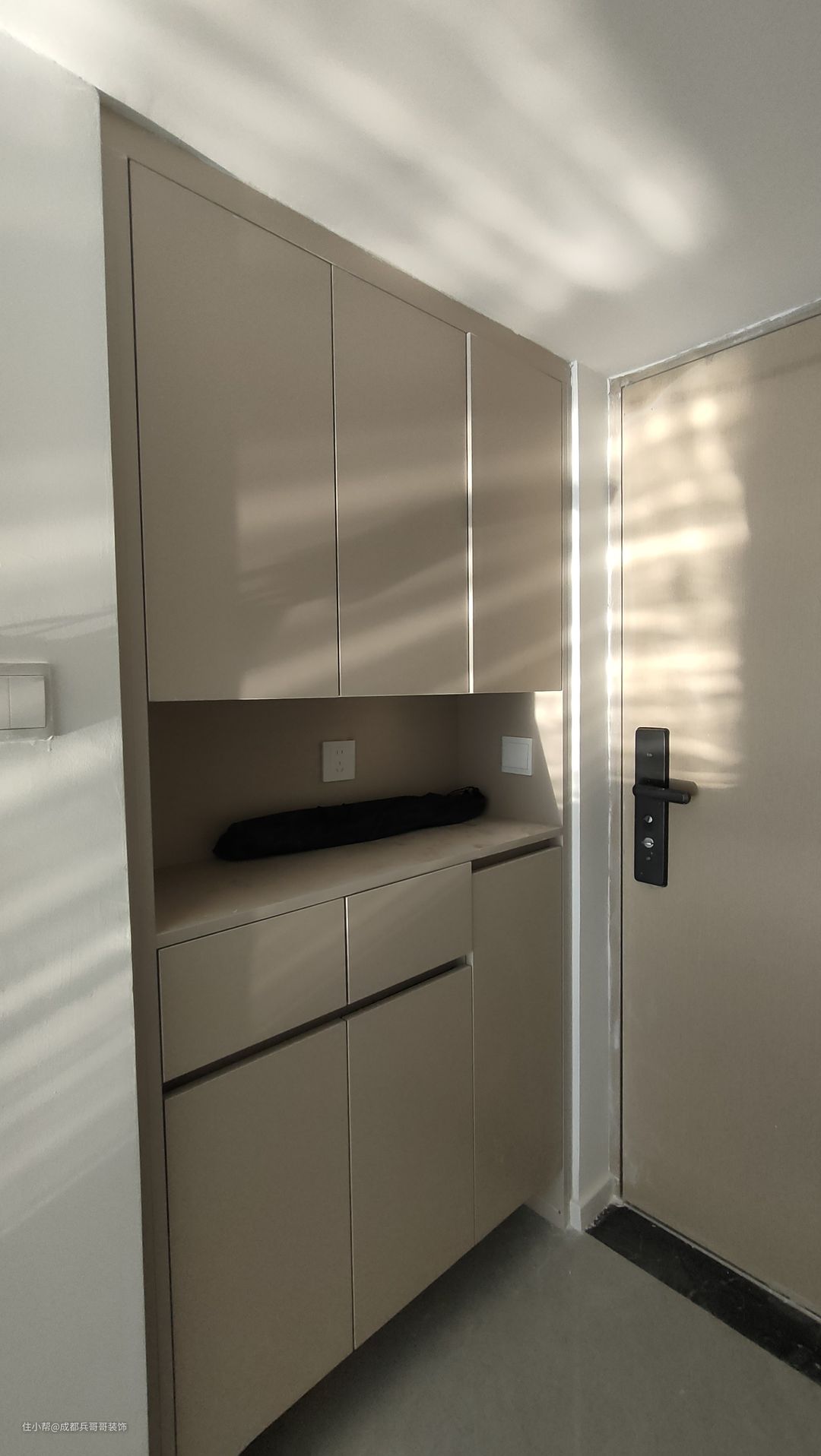 入户空间,钢结构搭建后,需要将有限空间有效利用起来。根据公寓常规布局,阁楼下方一般是厨房、卫生间和鞋柜,但也有厨房放在靠窗位置的案例,可以随之变换。 这套公寓呢,进门左侧是厨房空间,右侧便是鞋柜和卫生间。 另外,我们可以看到整体这样的方案,入户的位置采光效果也非常赞,阳光好的时候,光影留下的痕迹让空间更具形状,也让整个空间更像一个温馨的小家啦~~