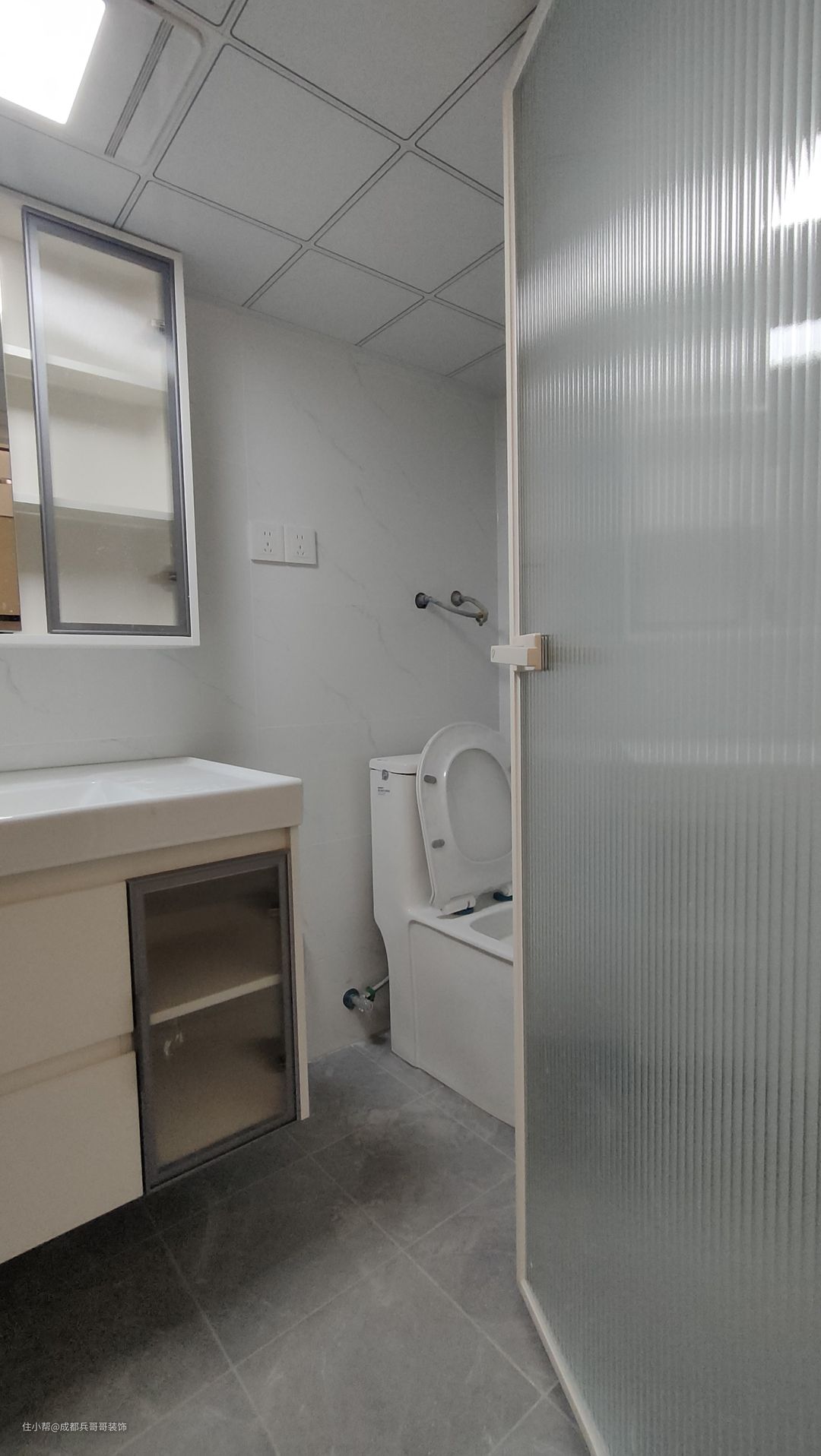 卫生间,流行式干湿分离,设计在一楼空间,马桶区、淋浴区、盥洗区,4个平米左右,可谓是“麻雀虽小,五脏俱全”。