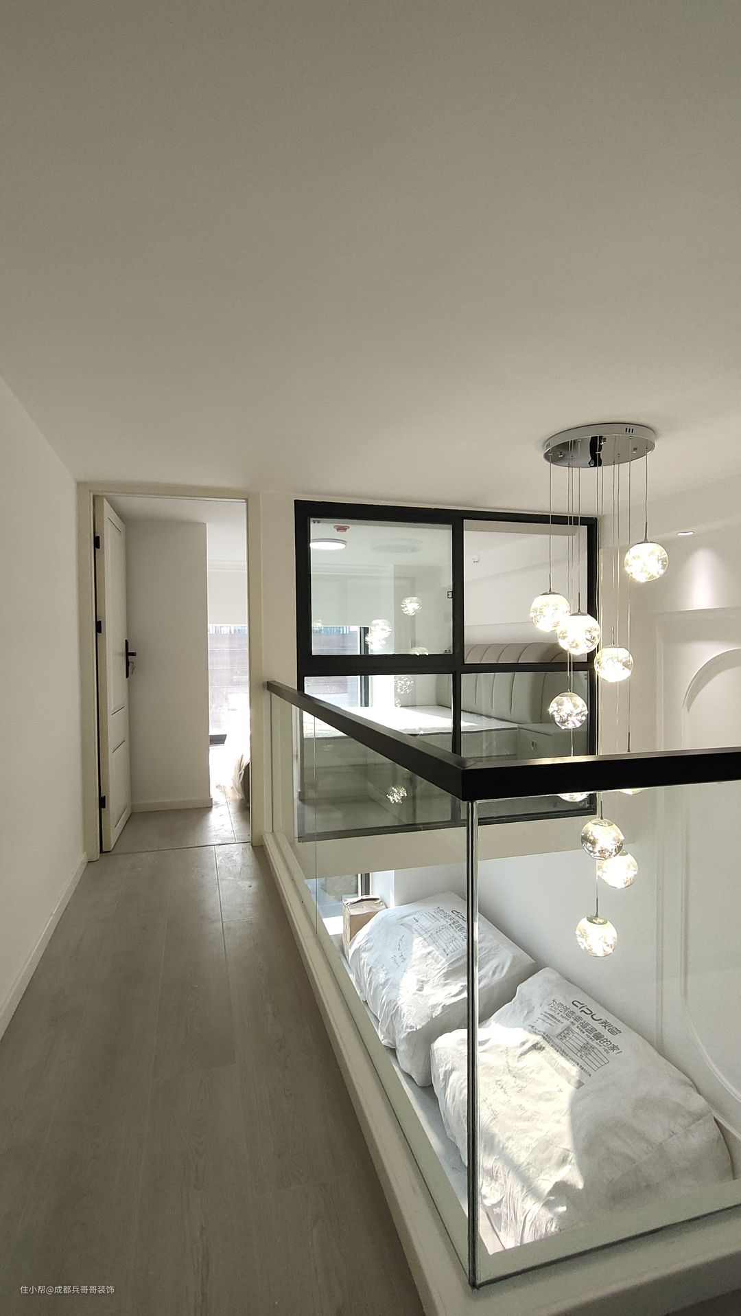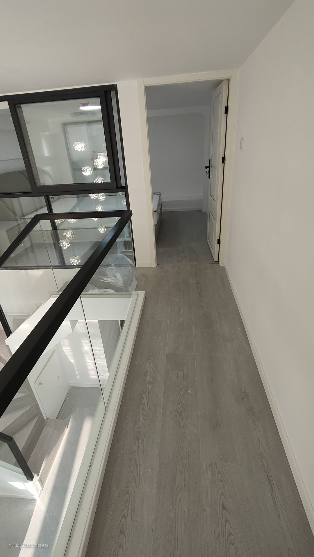 二楼过道,宽度可以在80cm-120cm为宜,过道可以分别通往二楼主卧、二楼次卧、楼梯,木地板铺满整个二楼空间,生活舒适性更好。