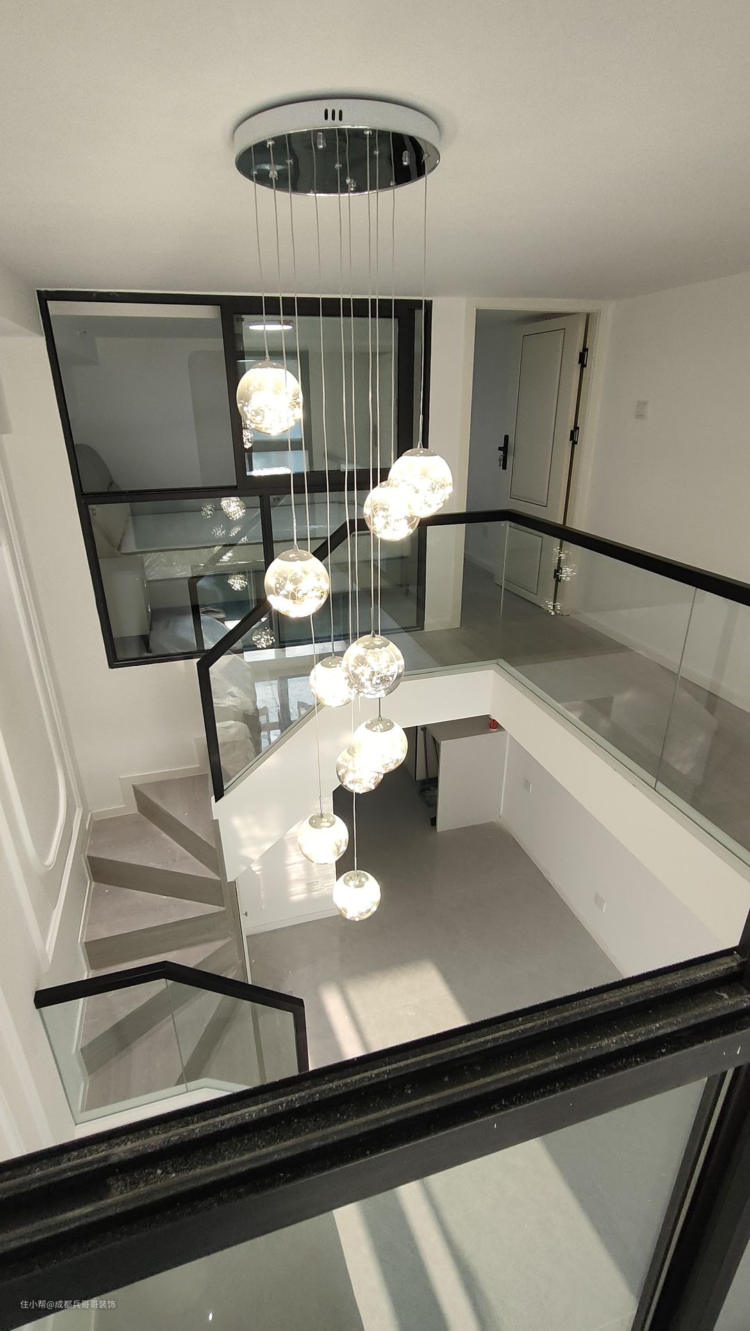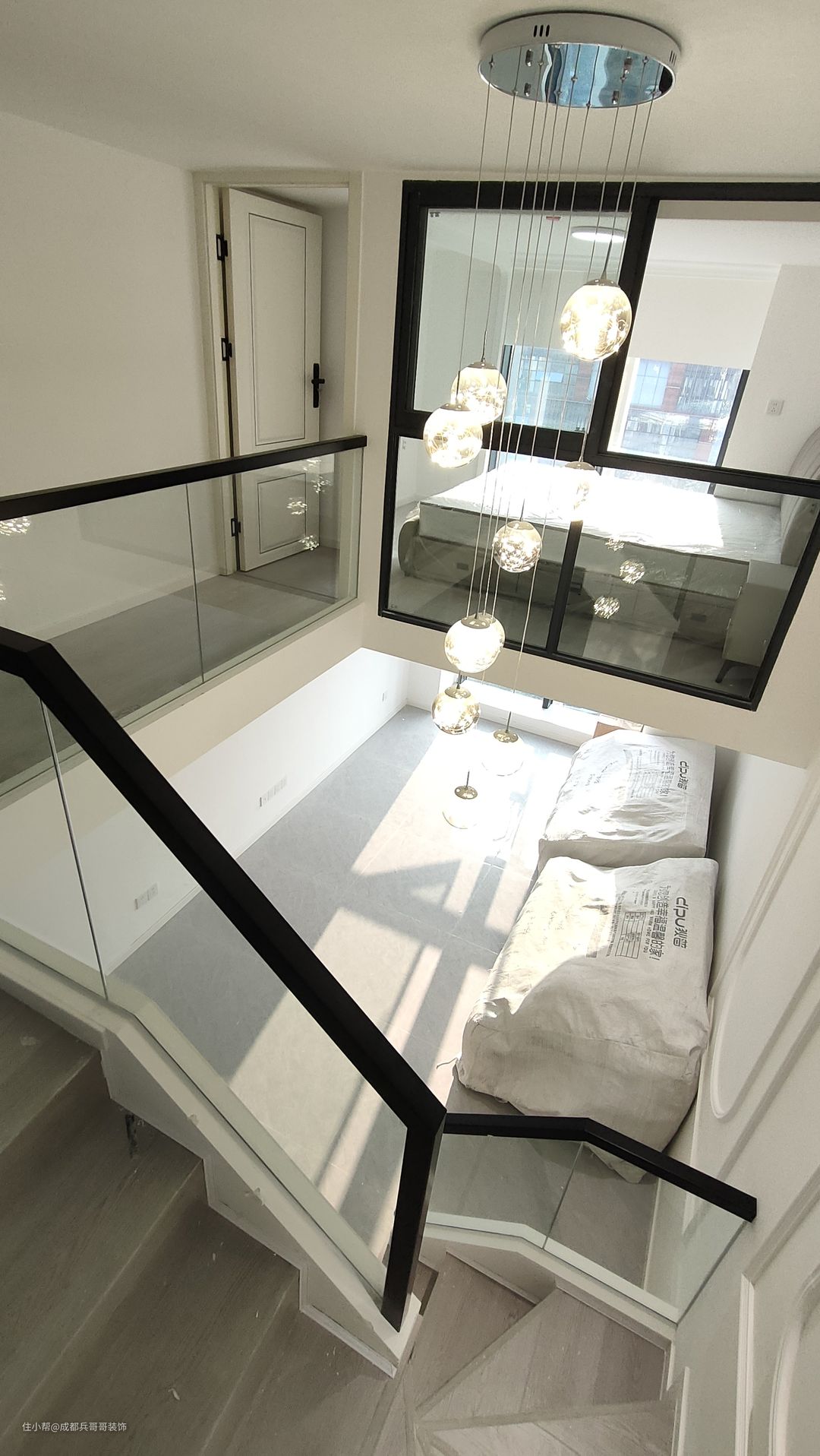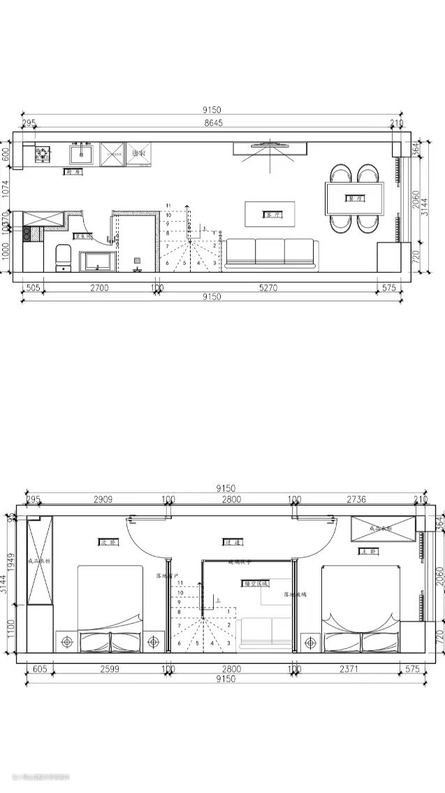 ❤本案例loft原始结构是长9.15m*宽3.134m、层高为4.2m的长方体公寓,只有一侧窗户采光通风,需要进行钢结构隔层搭建,楼梯来连接两层楼空间。业主要求保留两个卧室,风格简单一点,不要满搭建过于压抑。 所以公寓装修第一步,首先是钢结构搭建方案,选用的是镂空两边搭建的形式,中间部分挑空整个层高的高度,这样可以有效降低层高过矮带来的视觉压抑感,一二楼还能都拥有采光通风效果,很适宜的一种搭建方式。 公寓装修接下来的施工工序:水电、消防改造、木工吊顶、墙固、乳胶漆、主材安装、扶手安装、硬装。 整个公寓的空间布局:一楼客餐厨卫+二楼主次卧+过道+公寓楼梯+挑空设计。