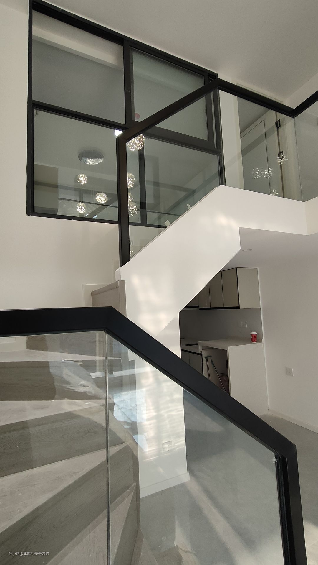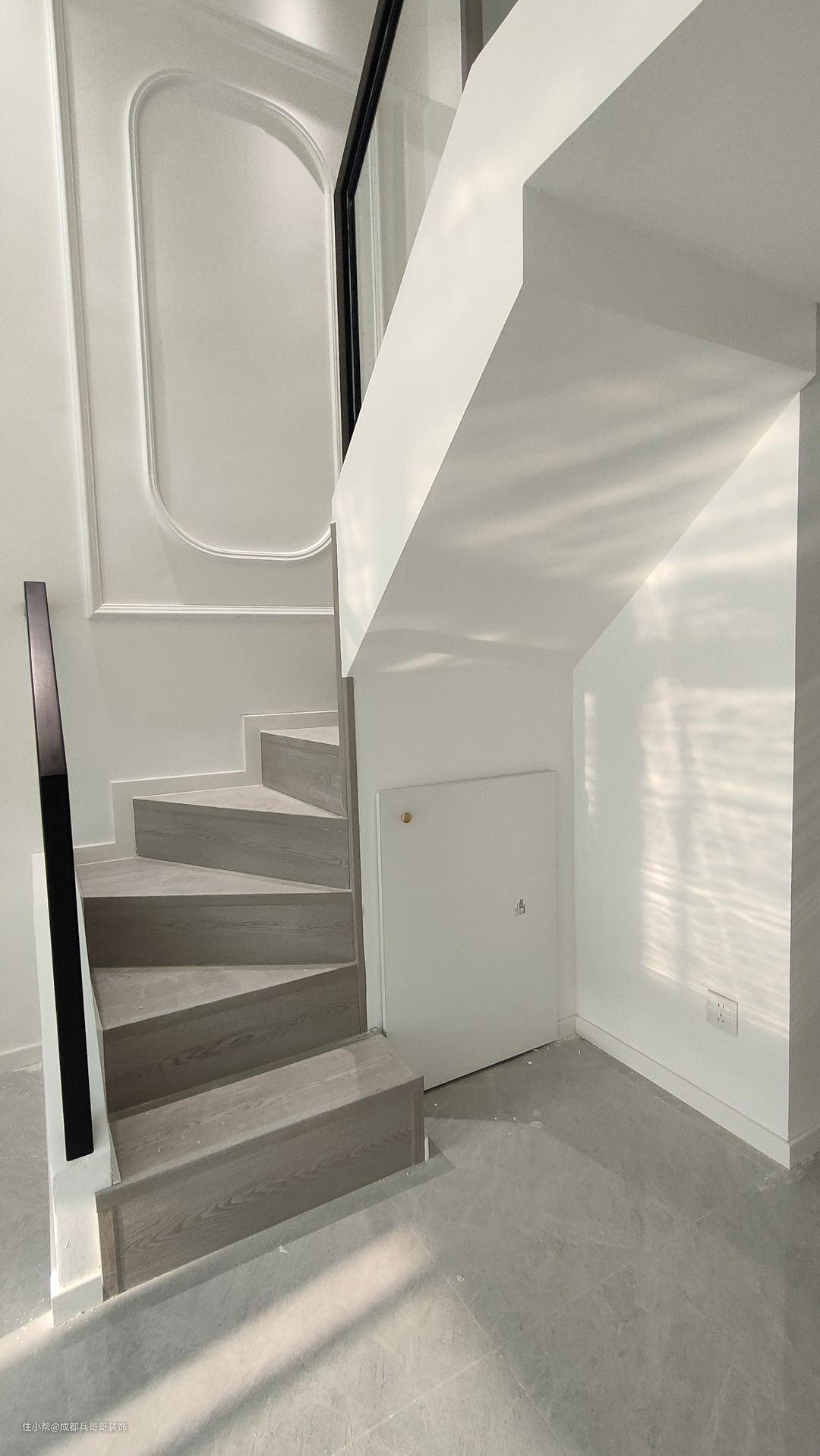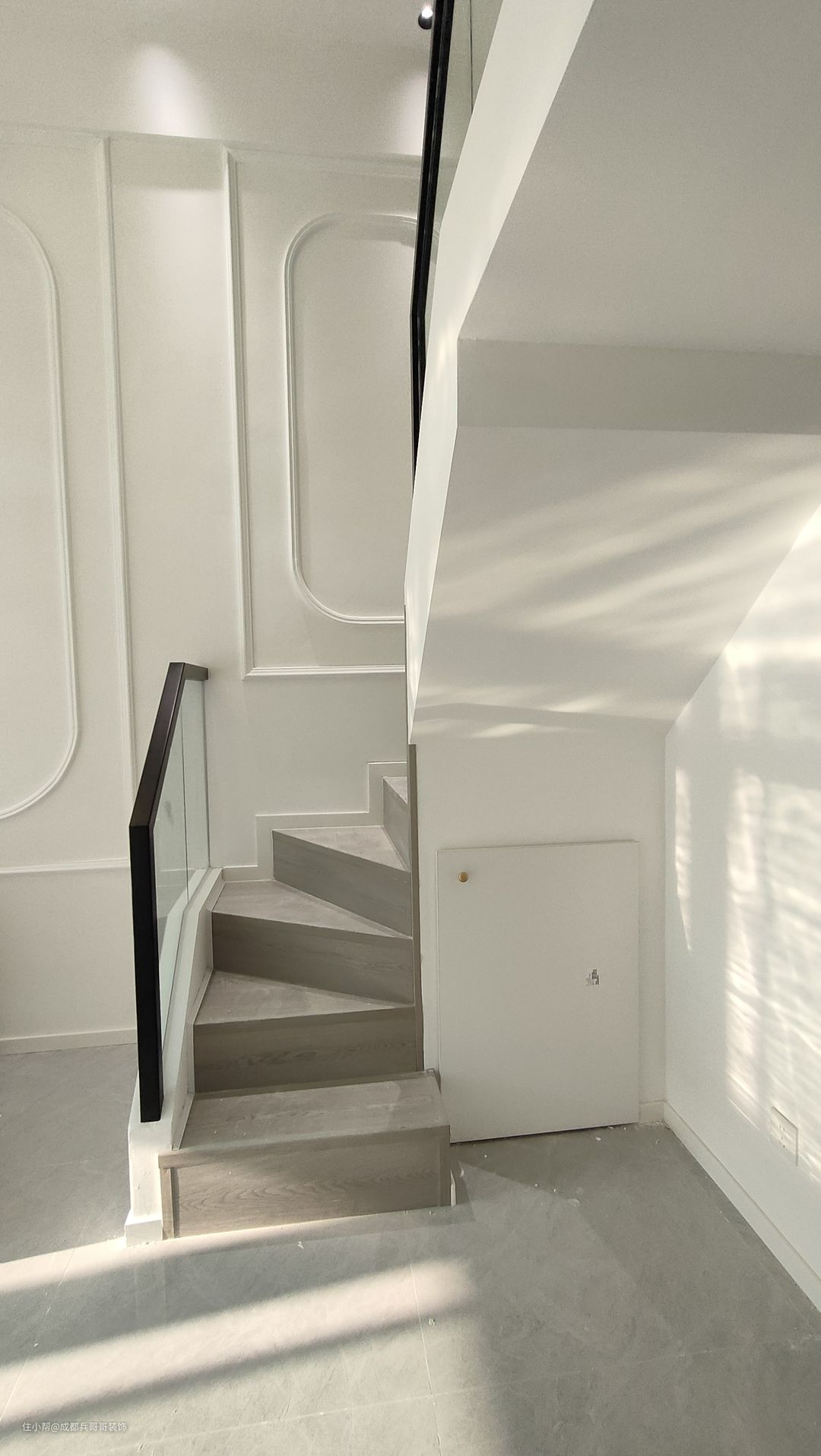公寓楼梯,选择的是U形楼梯连接一二楼,木地板踏步+实木玻璃扶手+梯下储物间,简约大气又实用。 楼梯踏步尺寸(长*宽*高=80cm*23cm*19.6cm)