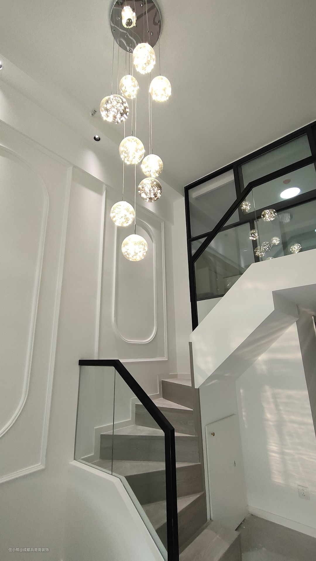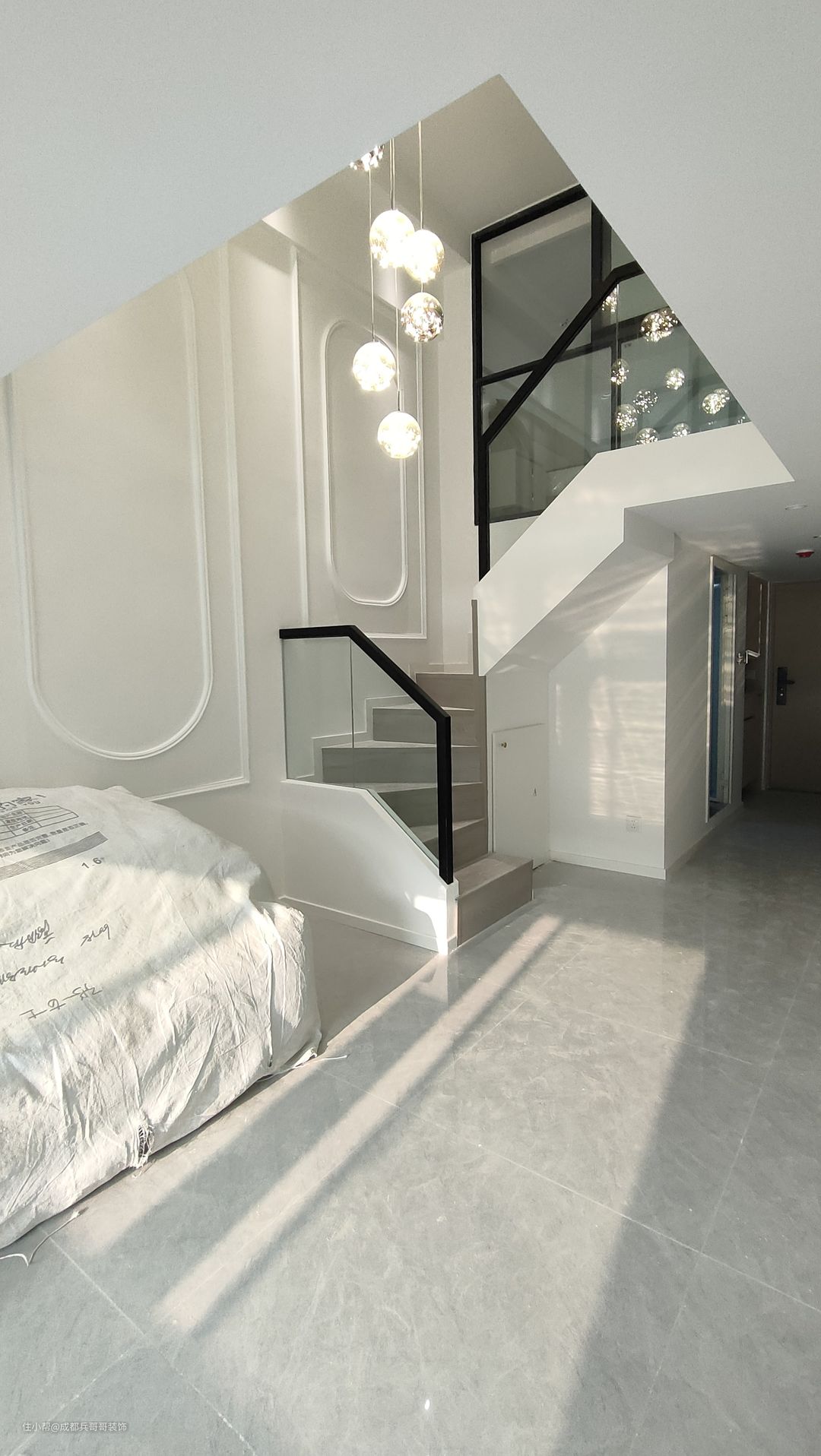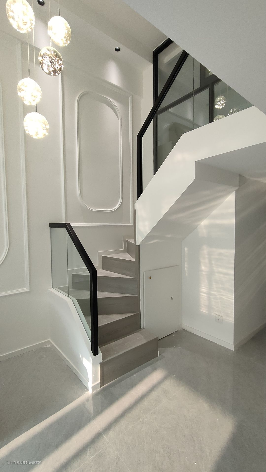 公寓楼梯,选择的是U形楼梯连接一二楼,木地板踏步+实木玻璃扶手+梯下储物间,简约大气又实用。 楼梯踏步尺寸(长*宽*高=80cm*23cm*19.6cm)