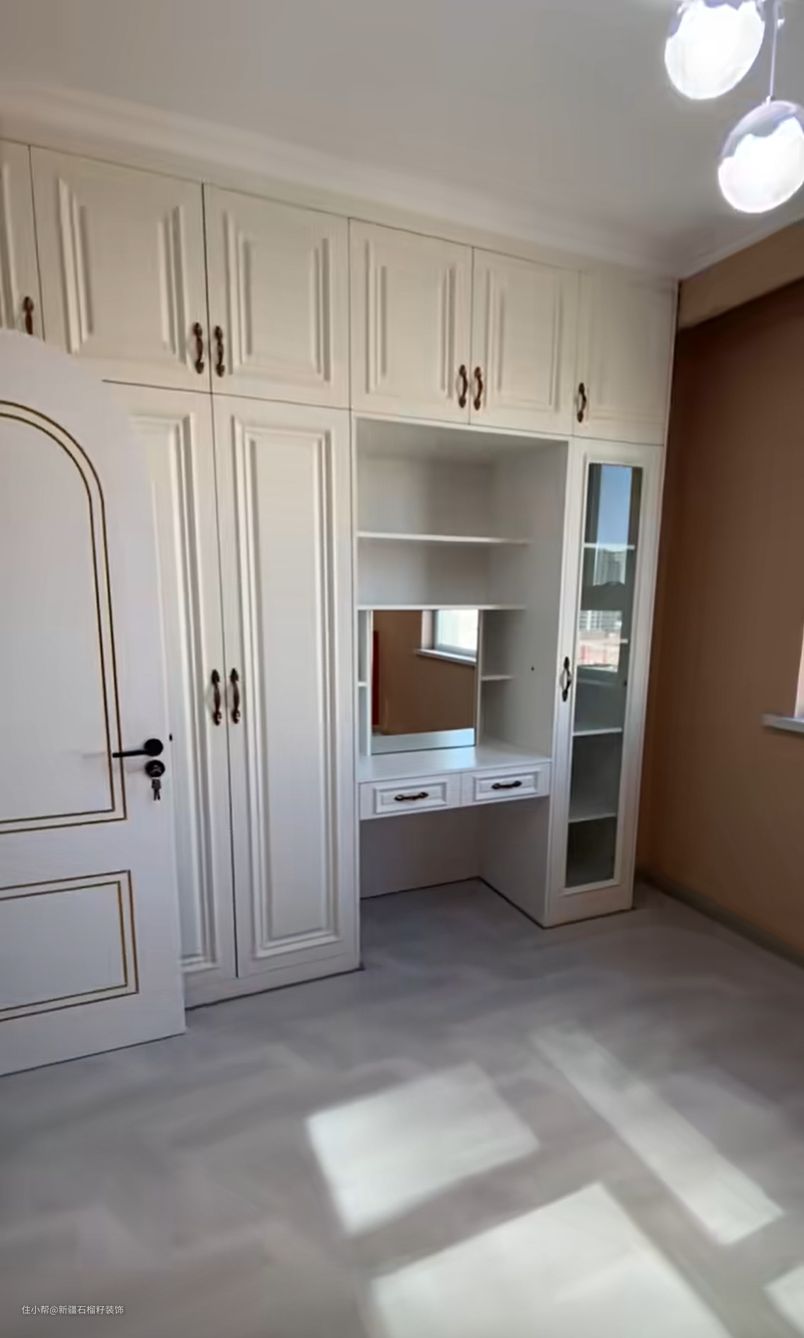 次卧内嵌式的化妆镜,有一种深处白雪公主的世界中,每天清晨问一句:“魔镜魔镜,谁是这个世界上最美的女人?”