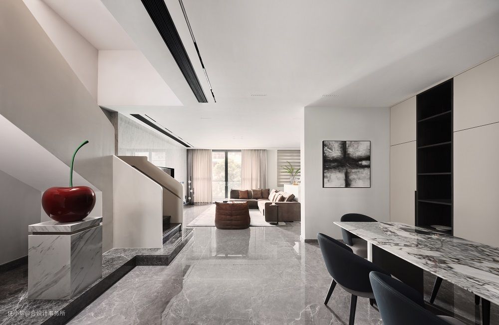 美拉德的基石是米灰白。顶部大面积的浅色系散发着圆润而感性的温暖,如温柔轻抚,散发于日常。花白色的大理石茶几,坐落于客厅中心,大理石的自然纹理足够触达到每一个角落,在每一处缝隙中闪着微光。 #客厅 #客厅设计