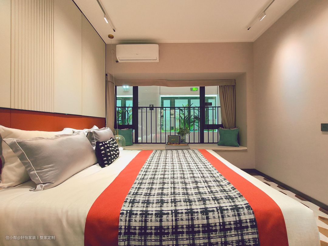 主卧选用橘调床品,橘色搭巾点亮室内空间,赋予空间简约时尚美感,床侧放置书桌,宽大桌面,宽敞舒服,满足日常用品的摆放,拥有足够容量放置您想放的东西,安全圆角设计人性化的考虑,去除直角对人体的磕碰伤害,保护家人从细节出发。钢琴烤漆工艺,多道油漆施工的繁复工序,与普通的油渗饰面相比,亮度、手感特别是稳定性上均不可同日而语,漆产品经过多年使用仍然能够光洁如新。特有的多道油漆工序,多底多面的用料,使得表面不仅光滑,也特别防水,如遇茶水滴落等突发情况,一点不需要担心,轻轻擦拭就好