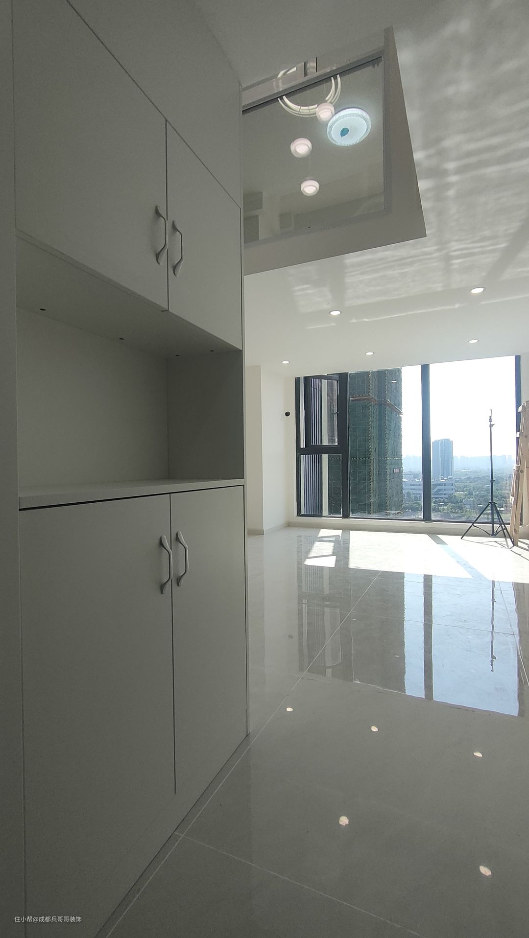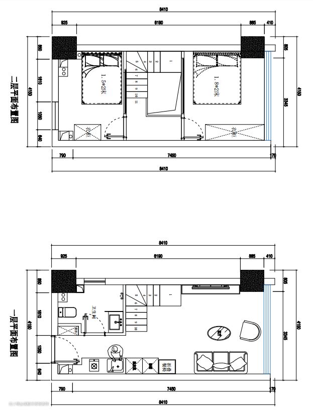 本案loft公寓案例是位于成都新都区•源上湾映江南,建筑面积41m²,套内面积30多平米,层高4.2米,净空高度4.05米。长宽尺寸是8.41m*4.15m,拥有两面窗户采光通风,一面是整个全景落地窗户,另一面是小区域的窗户,可以满足卫生间和次卧室有采光和通风的效果,整体来说原始结构和现场实勘情况不错。 ❤装修前,就是一个空的房间,二楼隔层未搭建。 屋主想要保留两个卧室,希望室内不要暗淡压抑➡所以二楼隔层选择了中间挑空设计,钢结构镂空两边搭建,既能满足来两房的要求,又能让公寓空间感通透明亮。 ❤装修后,两个卧室,两层楼空间。 设计师按照屋主要求loft公寓拥有两个卧室,室内采光足够,层高带来的压抑感也有效解决。 ❣现在和我一起看看这套loft各个空间吧👇👇👇