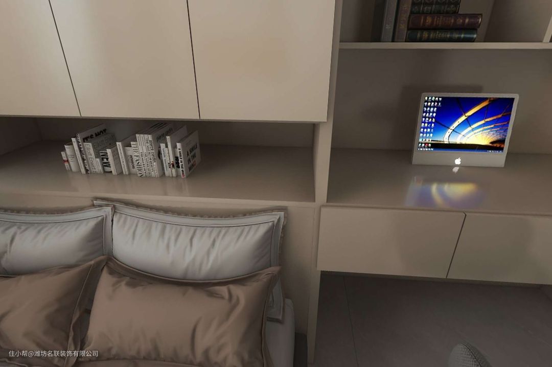 与公共区域不同的是,次卧室区域增加了柔和的色调,在此可以让人感到家的温馨与舒适。曲直相合,平添韵律感,赋予居者多层次的感受,在温柔浪漫中延续时光。