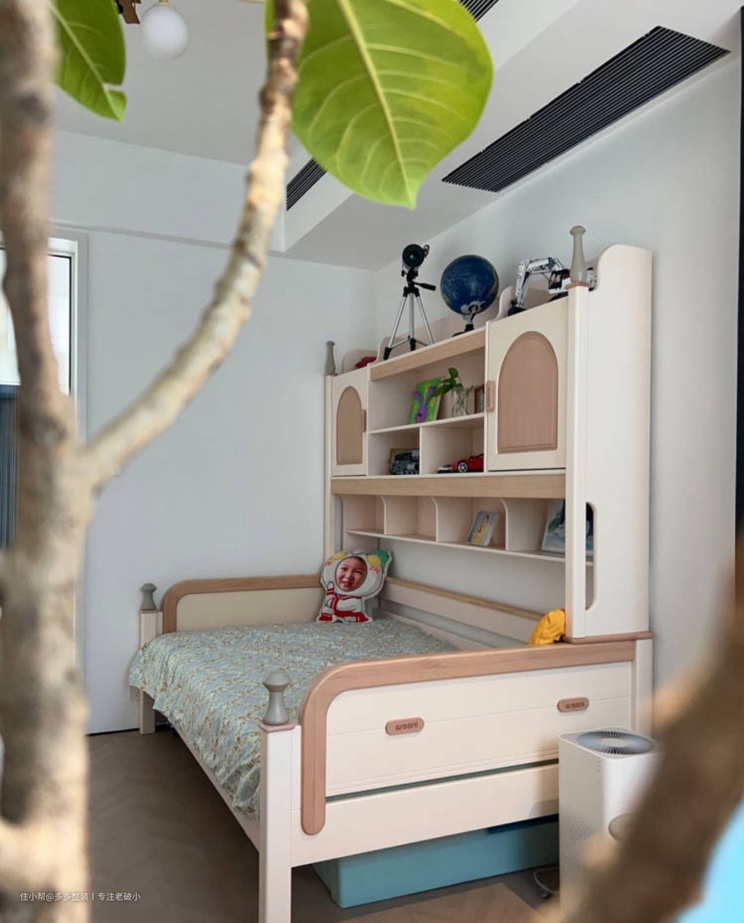 儿童房设计要点: ①多用成品家具,给后期预留可改造的空间。 ②童趣的软装,可以搭配出很好的儿童房效果。 ③儿童床的摆放方式适合两侧靠墙,让小朋友更有安全感。 多功能儿童床,让小朋友玩得好睡得好,在玩的过程中探索世界。