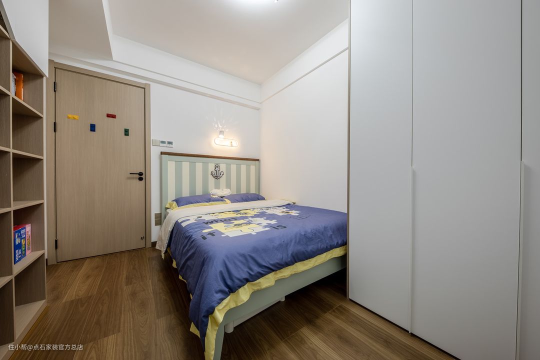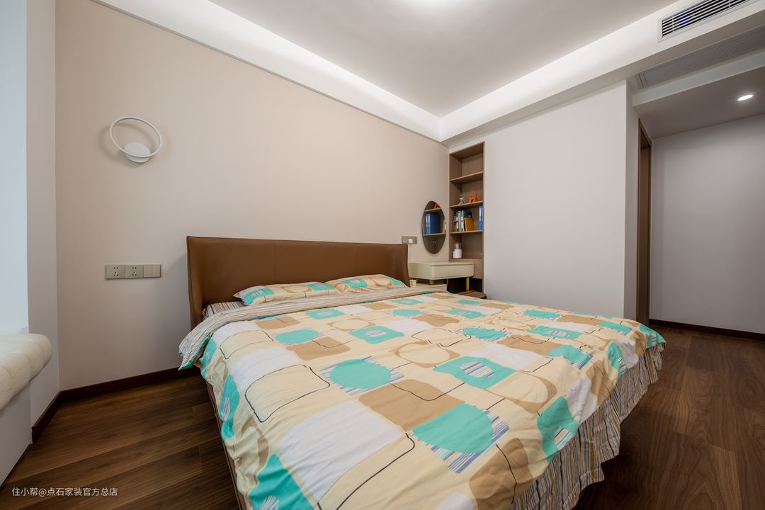 主卧室以自然舒适为主,家具多采用手工质感的肌理,清新简约的衣柜包括衣物收纳和抽屉收纳,精简细节也能构筑温馨生活,飘窗天生富有文艺的感觉,活力橙色的抱枕为居室更添一份绝美诱惑。