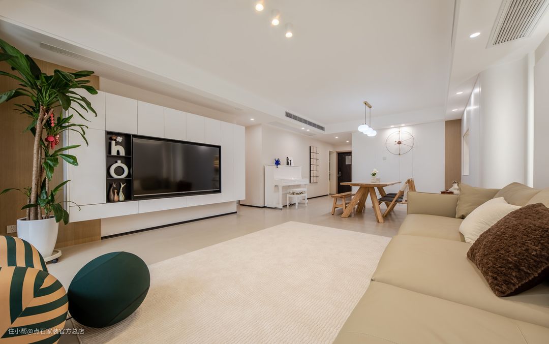 注重客厅的使用功能,主张废弃繁琐的装饰,室内布置按功能区分的原则进行,家具布置与空间密切配合,色彩造型紧跟时尚潮流,以个性化简单化装修方式打造舒适家居。