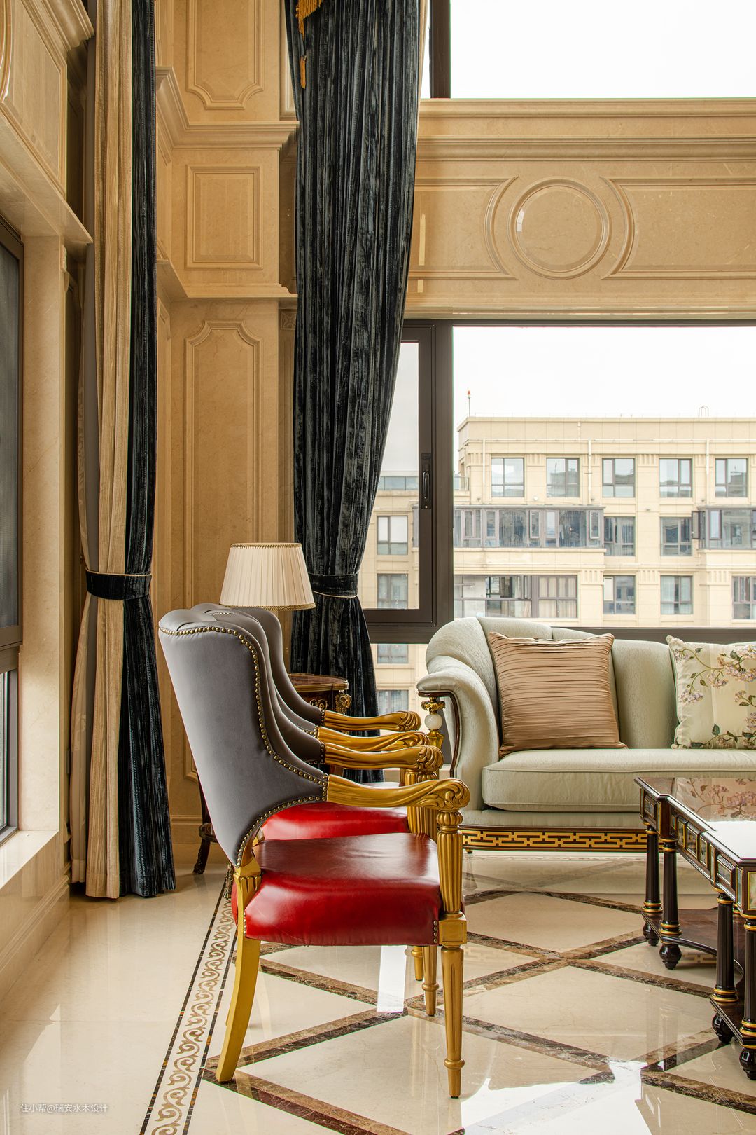 由大理石通铺而成的空间,散发出清冷的高雅,柔和的米色,对称的花纹,将欧式的精致与雅意显目地表露于一室之内。配置上色彩丰富的软装元素,浓烈与柔情,鲜丽与低调,空间在不断的视觉冲击下呈现出和谐的艺术美感。