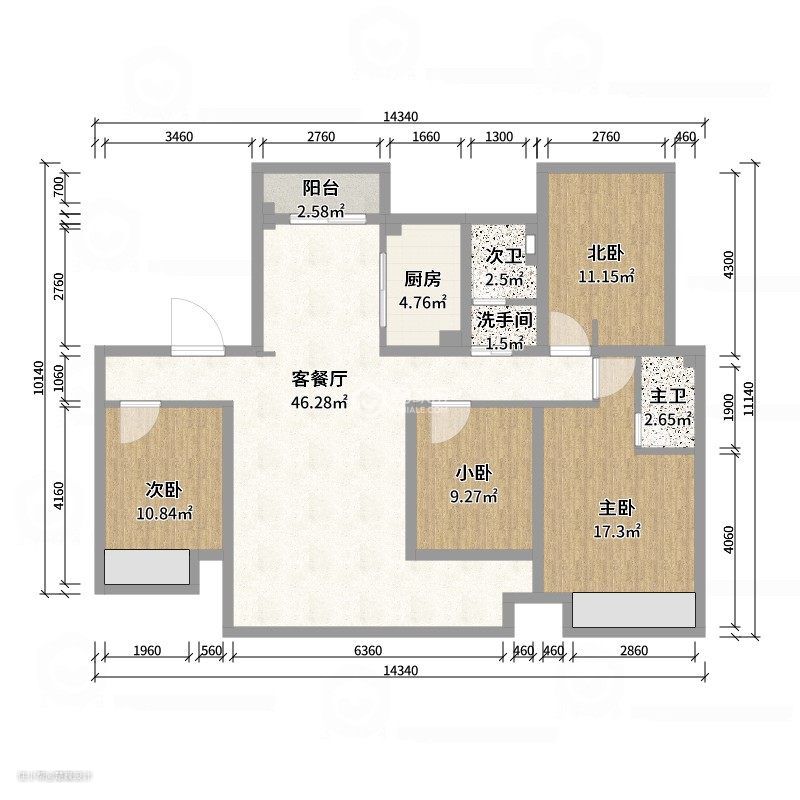 110平米三室一厅简装