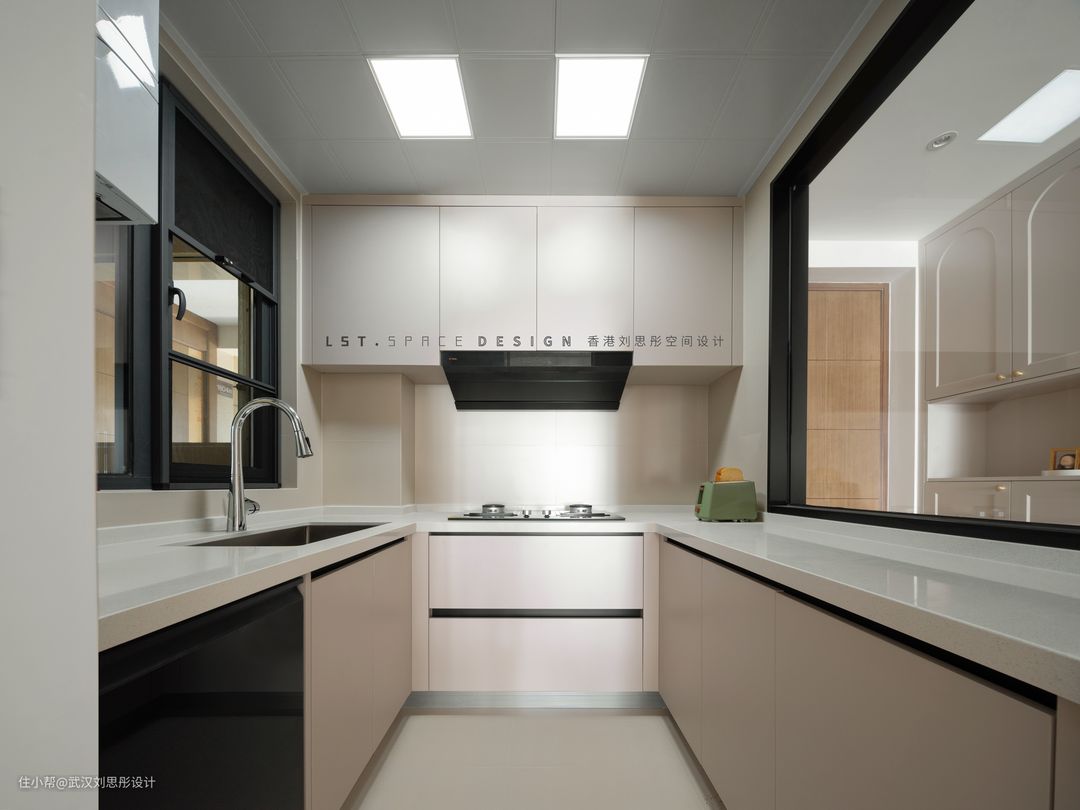 厨房U型厨房收纳系统,功能分区让小厨房合理布局更显大,半墙玻璃隔断让空间视觉更加通透明亮。
