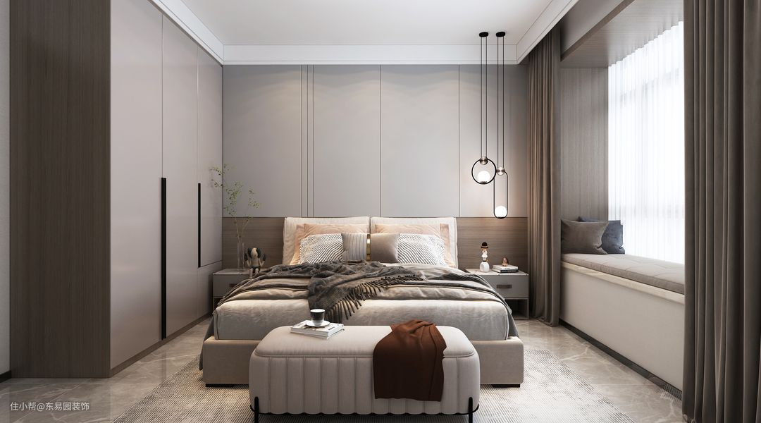 卧室是大空间设计线的合理延伸。主要目标是基于自然材料创造一个干净、简约但非正式的氛围。