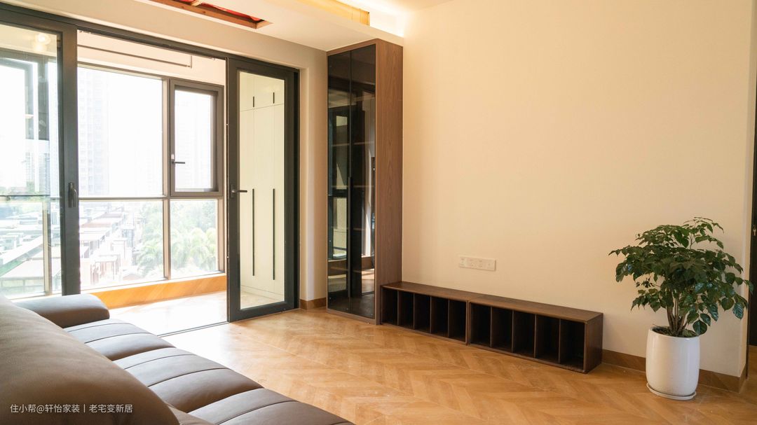 业主需求 ①原始结构布局条件良好; ②规划出书房,供工作学习使用; ③对卧室收纳进行规划。 设计亮点 ①玄关做嵌入柜,尺寸贴合拉平空间;阳台融入定制设计,打造家务区; ②书房纳入小阳台,增加空间进深,方便功能区布局; ③公卫改为洗漱台外置,隔断融合玻璃和半墙,演变为端景。