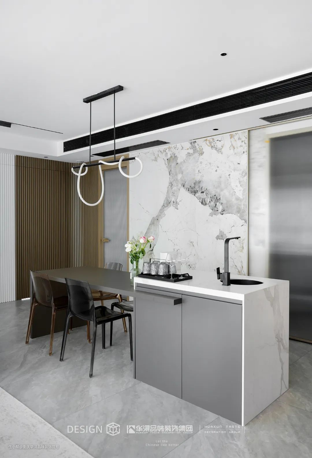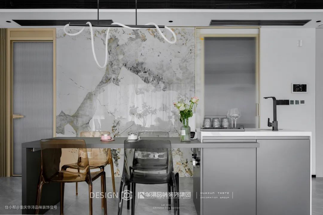 空间不再局限于基本功能,餐厅跃升成为社交、聚会的场所,一体化的布局,使得空间更为豁然明朗,通过岛台的形式进行呈现,让日常互动更加随心舒适。
