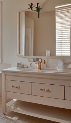选择在卫生间靠窗的位置放置浴缸,可以利用自然光线和通风来减少细菌滋生。这也有利于保持浴缸的清洁和卫生。 在洗漱台下部做镂空设计,可以增加储物空间,同时还可以让卫生间的空间看起来更加通透和时尚。这种设计也方便清洁和维护。它利用自然光线和通风来减少细菌滋生,同时通过创新的设计元素来增加储物空间和美观度。这样的设计应该能够提供一个舒适、干净的卫生间环境。