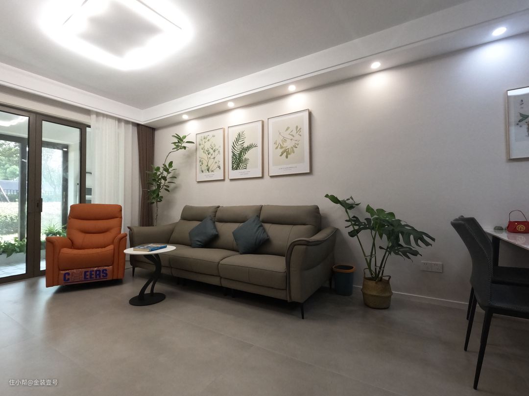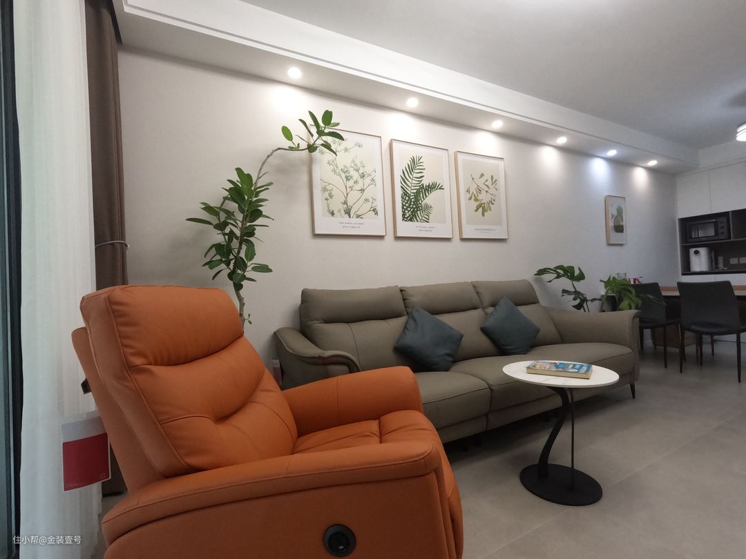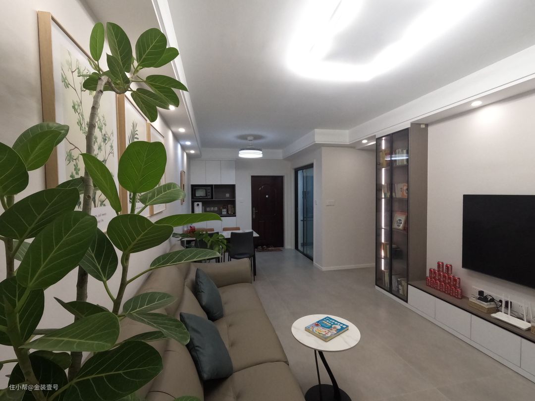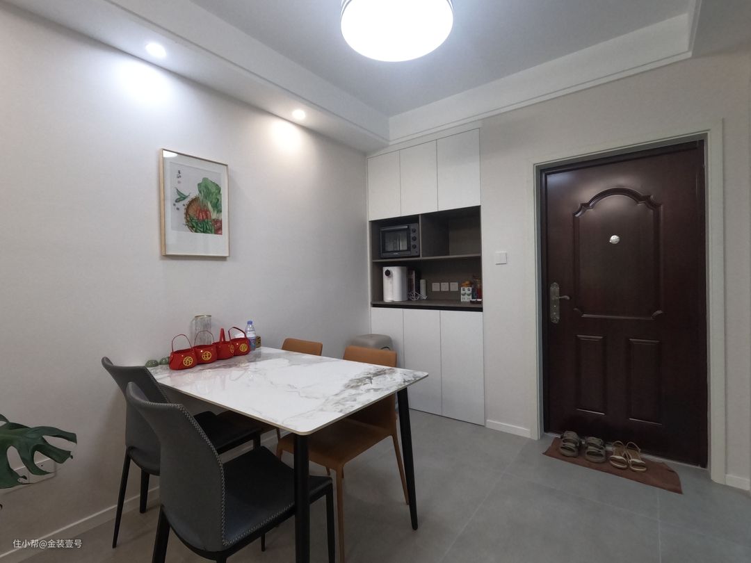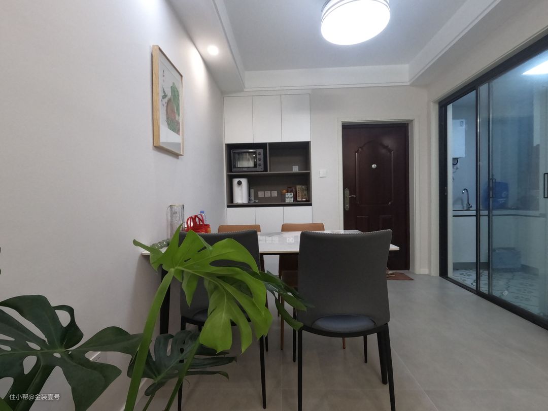 客餐厅一体化设计,扩大空间尺度,让家显得更加开阔,保留视觉高度,只做了简单的双眼皮吊顶。