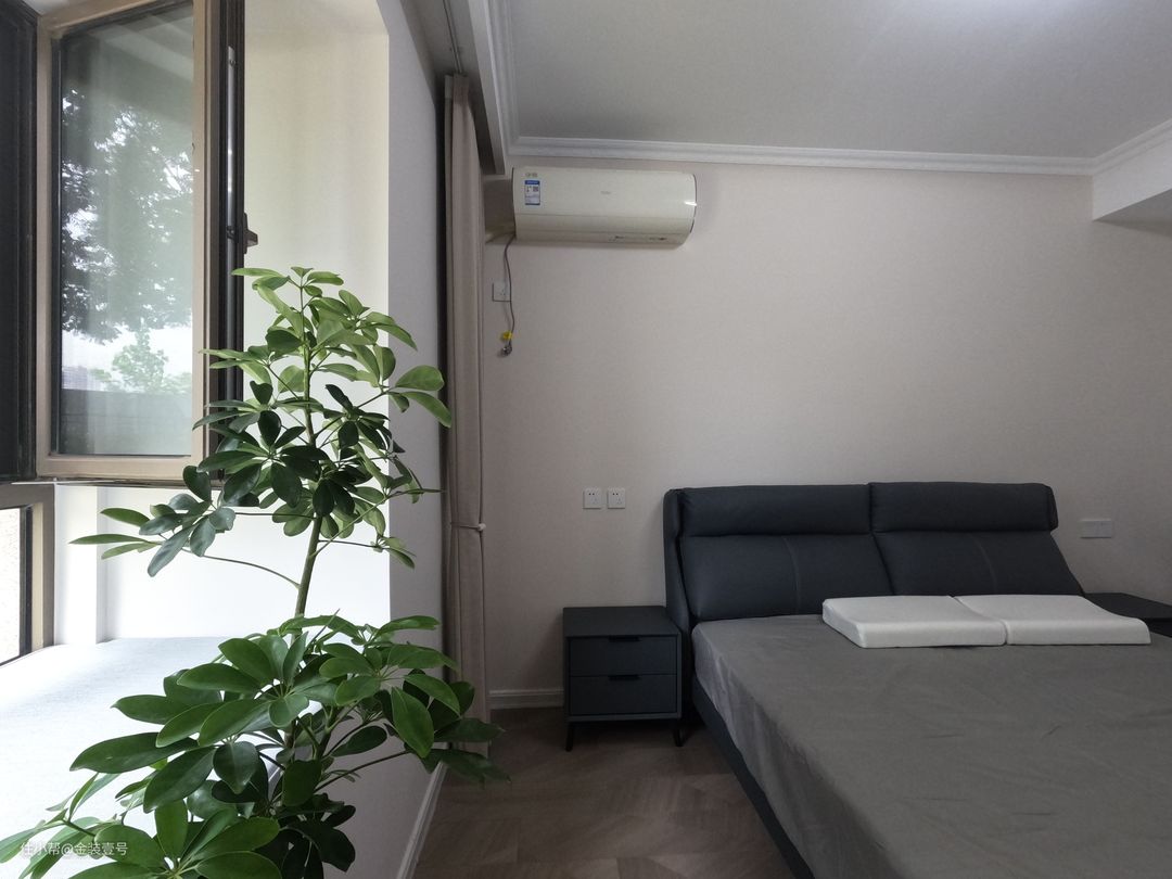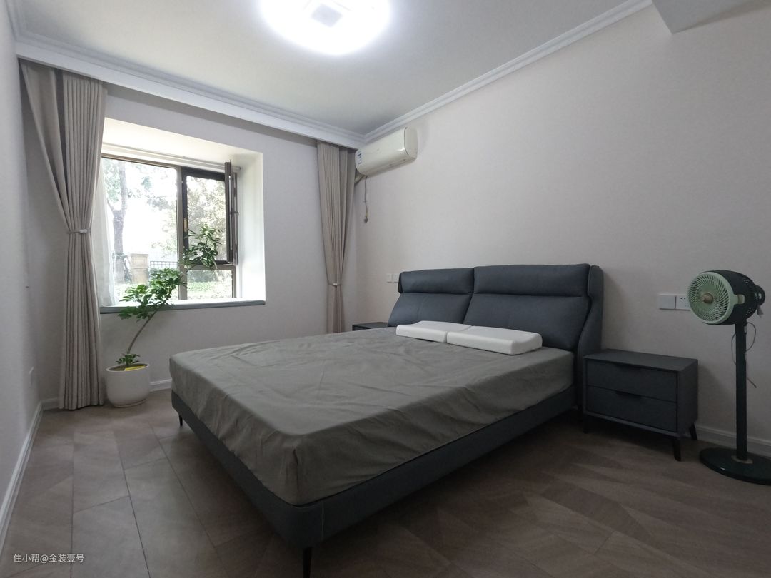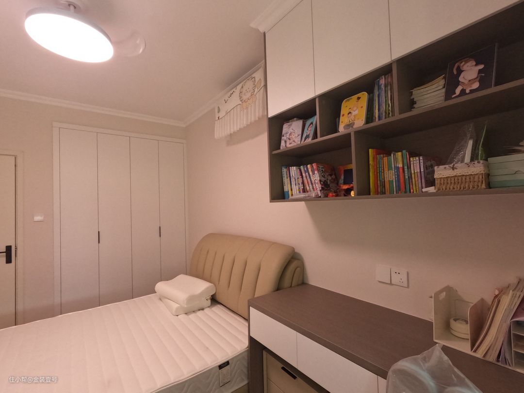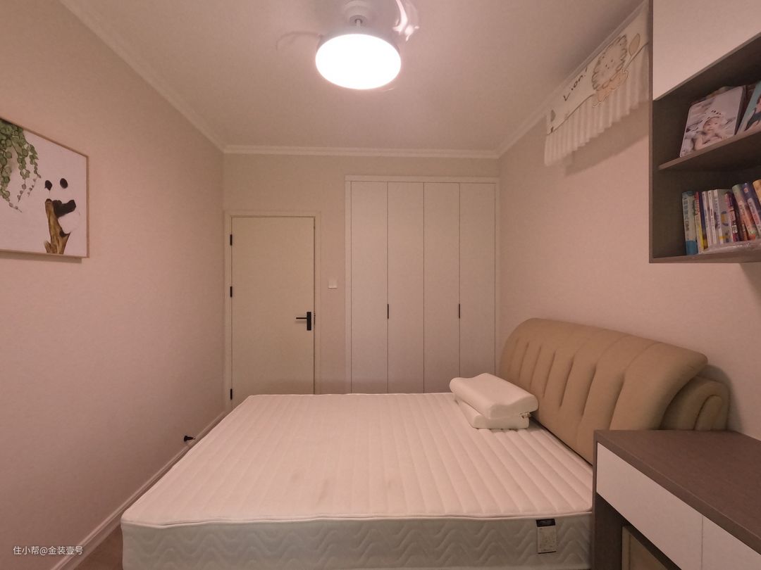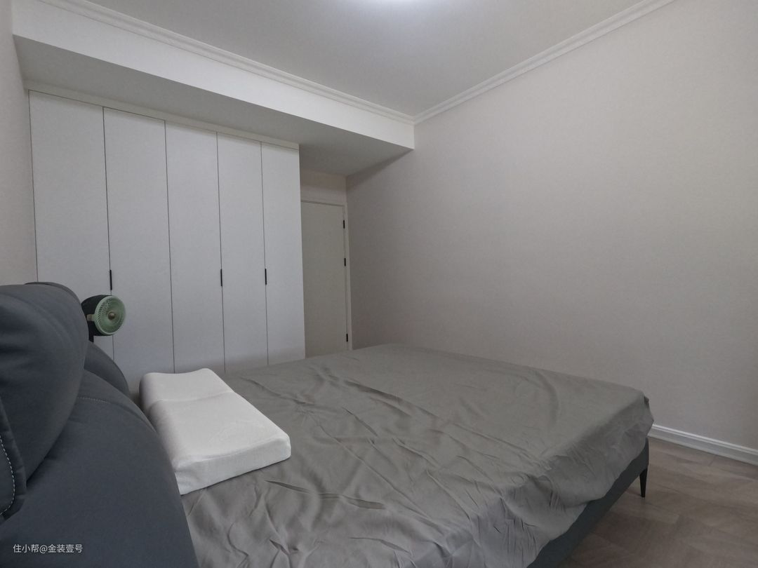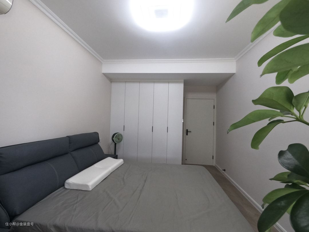 次卧以清简沉稳为主,进门靠墙一面做到顶衣柜,满足生活居住的收纳空间。