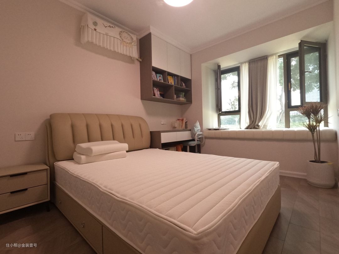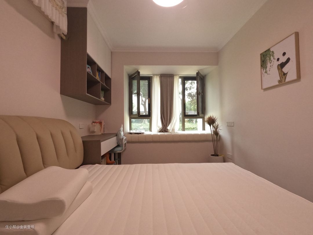 卧室整体以温暖的氛围感为主,色调以粉色和白色为主,为了满足整个生活的所需收纳,加了一组定制柜上墙,让生活更加便捷。一切设计只是为了让生活更加舒适。