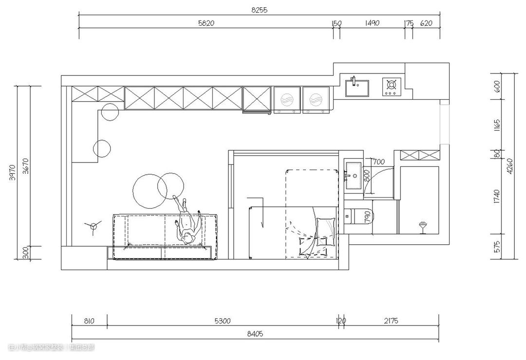 本案是位于荔湾区的小户型公寓,原始户型是完全没有隔断,套内35平的大通铺。因此屋主希望大通铺变一房一厅,同时把空间利用到极致,并能划分不同功能区,从而达到舒适的居住环境。