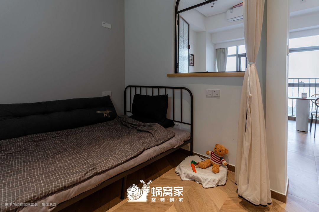 在原客厅的基础上,通过隔墙打造半开放式卧室,让空间更显开阔。