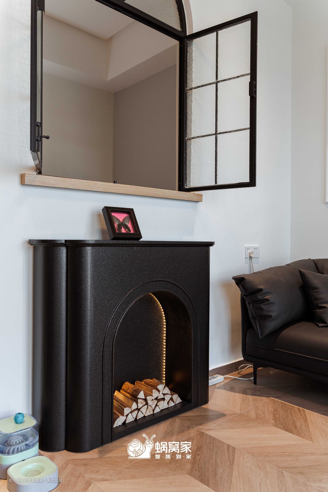 弧形门窗设计不仅增加室内采光,扩大视野,还让家居更美观,搭配壁炉与装饰画,营造复古氛围。