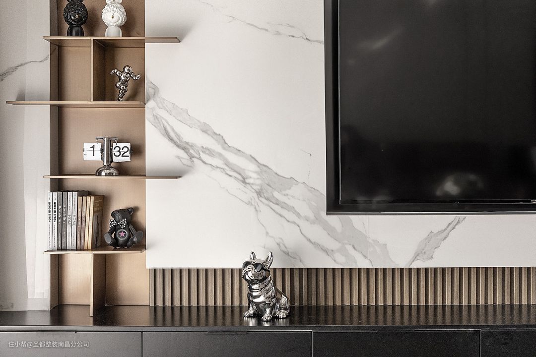 客厅以素色打底,展现出下悠然渺远的风貌。太妃糖沙发与琉璃金吊灯赫然而出,让原本优雅淡然的环境多了些许年轻与活力,创造出一个具有空间感和时尚感的精致场所。 大理石电视背景墙自带轻奢属性,底部又融入温暖的木质元素,不仅缓和了石材的冰冷感,还多了几分自然气息。客厅连通阳台,搭配大面积的落地窗,用最宽阔的视角,连接外面的世界。