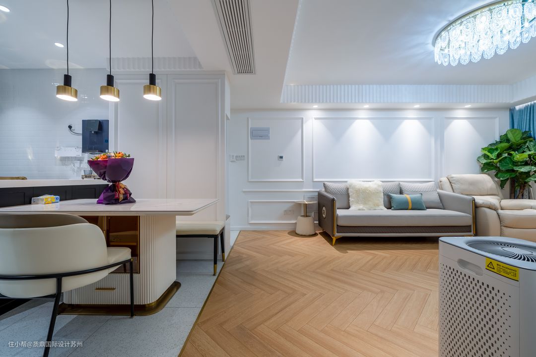 业主是一们女士,一家三口居住,喜欢法式的浪漫风格。经过与业主的详细沟通,在装修元素搭配以及设计选材等方面,从业主的角度将空间呈现完美的模样。以整体的线条造型、完美的细节,营造出简单大气温馨的感觉。