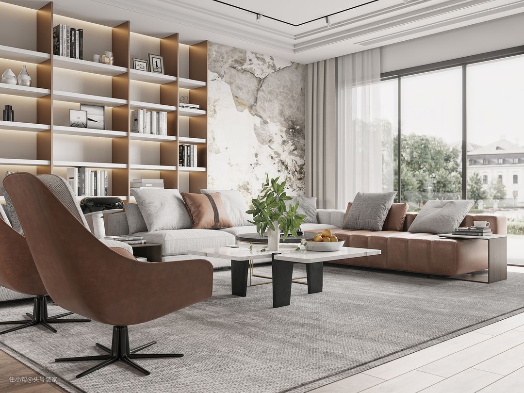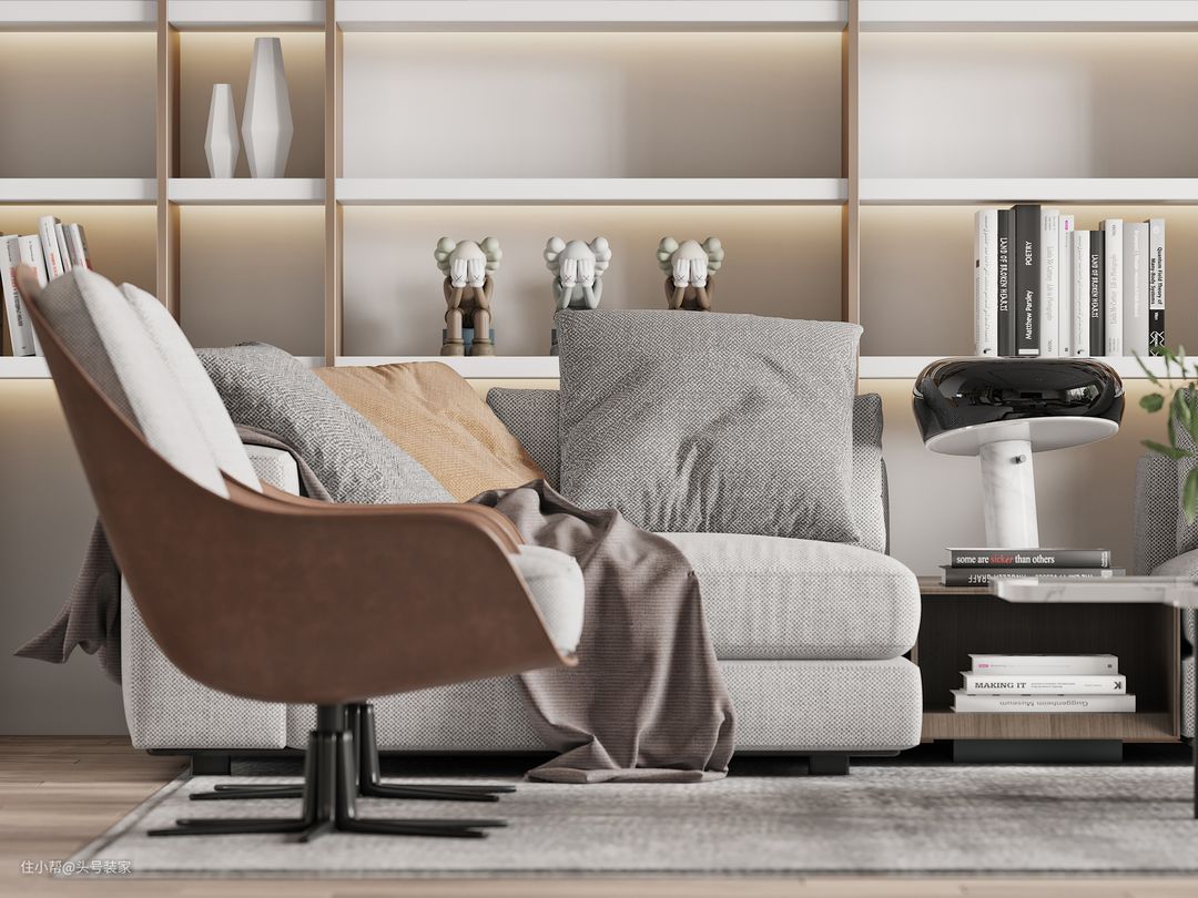 以舒适和温馨为目标,通过选择具有实用功能的家具和装饰品,营造出一个宽敞而宜人的环境。墙壁上的画作则突显了个性与艺术品味,使整个空间更具特色。这种设计理念旨在创造一个既适合放松休息,又能满足阅读和学习需求的舒适空间。