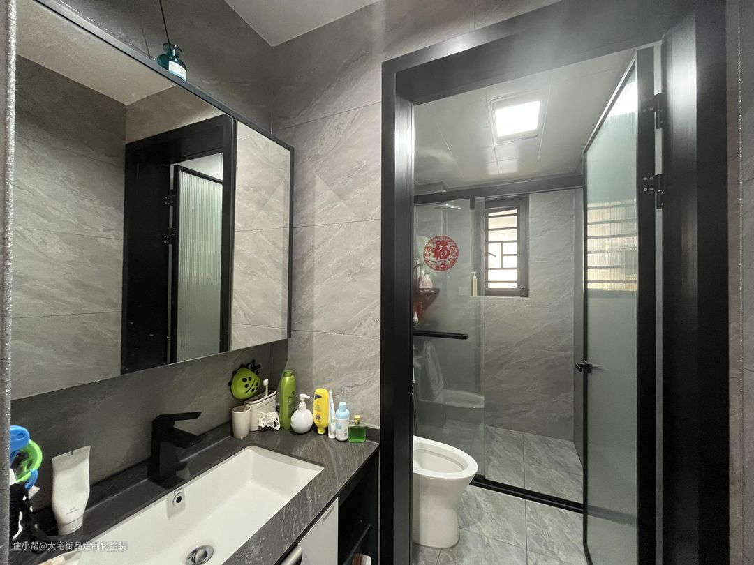 卫生间采用干湿分离的分区,使用大理石面砖和防滑地砖,整体明亮整洁的同时,提高安全性。