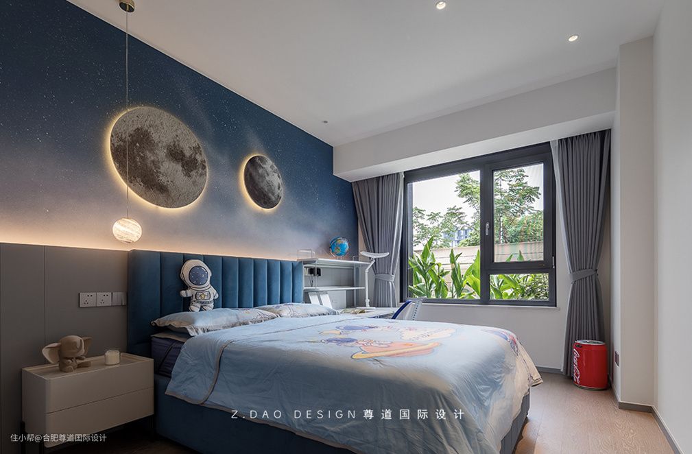 男孩房,考虑到舒适性卧室用的都是木地板,卧室的左边是到顶的衣柜。