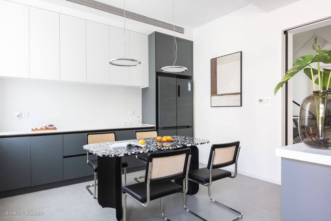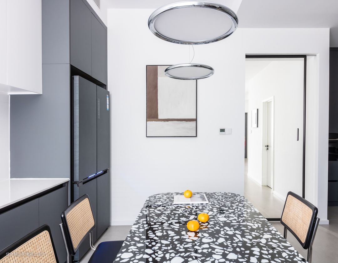 收纳柜均采用免拉手设计,亮光材质好擦洗 收纳柜门极简收口,一门到顶,没有多余线条