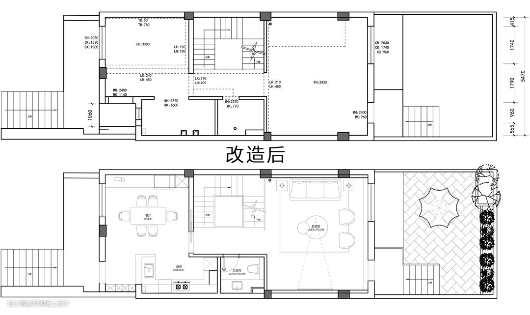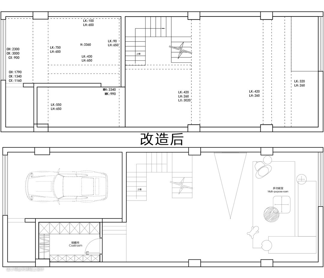 客户是通过我们之前服务的老客户介绍过来的,购买的是一套3层带地下室的连排别墅,居住人口为业主夫妇和2个女儿。 整体规划也很清晰,负一层主要为储藏室和休闲娱乐区,一层需满足会客厅,封闭式餐厅,厨房,卫生间,二层为2个女儿的房间,希望实现2个带卫生间的套房。三层设为主人房,三层的户外露台做为洗衣房,