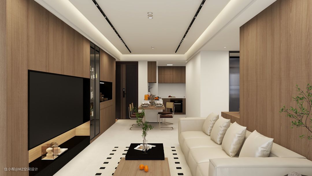 阳台和客厅整个打通,沙发背景做一整面的木饰面装饰。