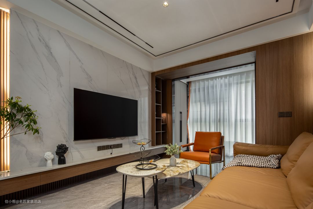 甚至于一束鲜花的装点,都将这个客厅空间的和谐自在尽情演绎。