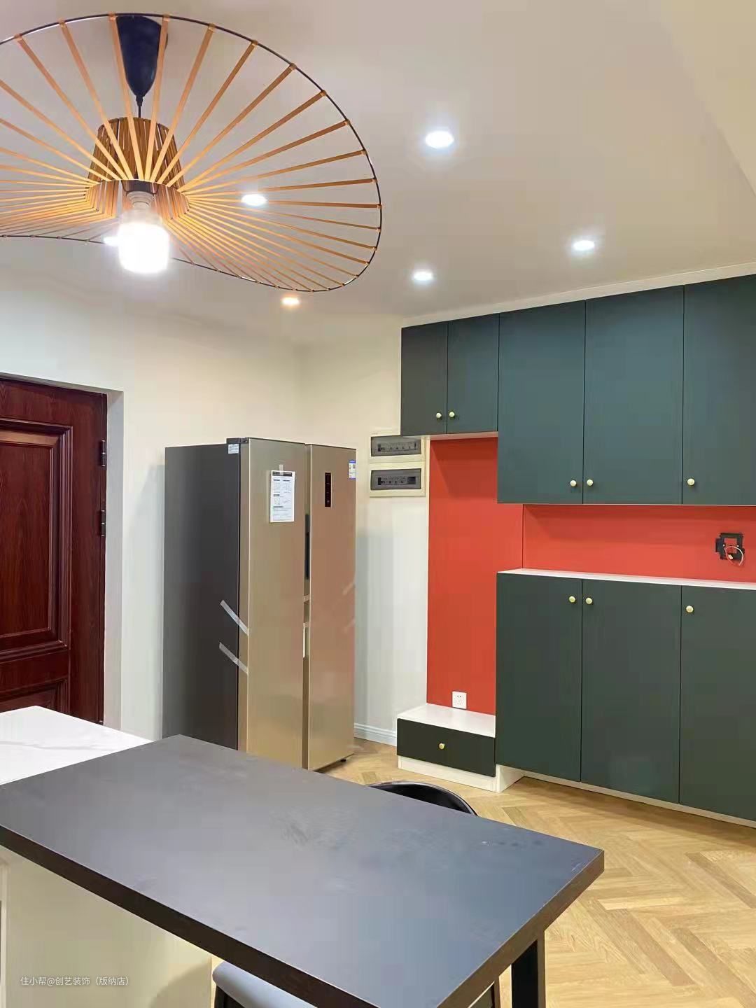 原木系厨房给人温暖舒适的感觉,红白相间的浴室柜让人眼前一亮,每个空间都很出乎意料的好看。