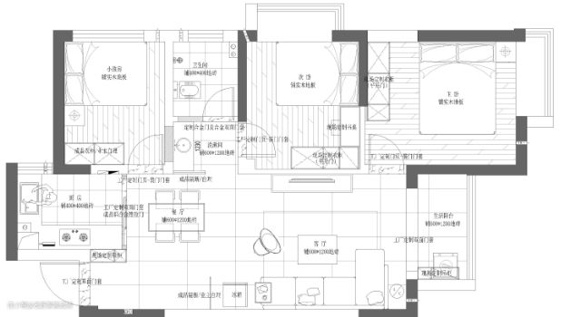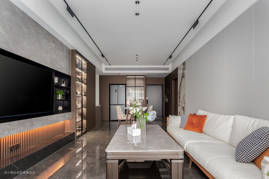 餐厅和客厅,动线顺畅,一气呵成,极度改善了原本空间狭小的问题。