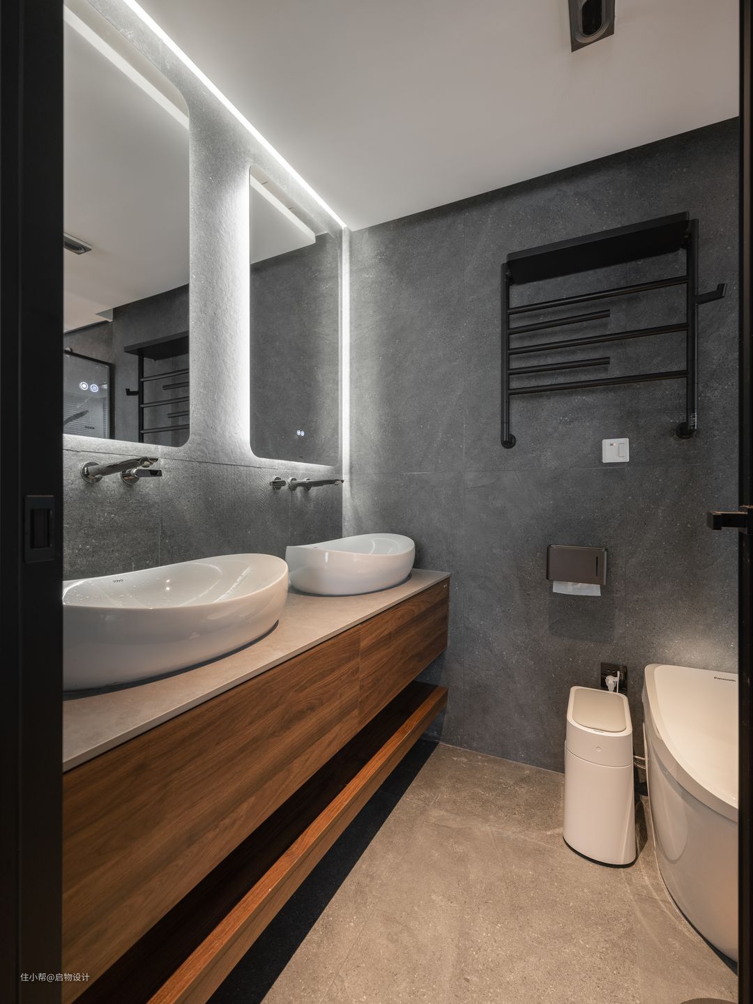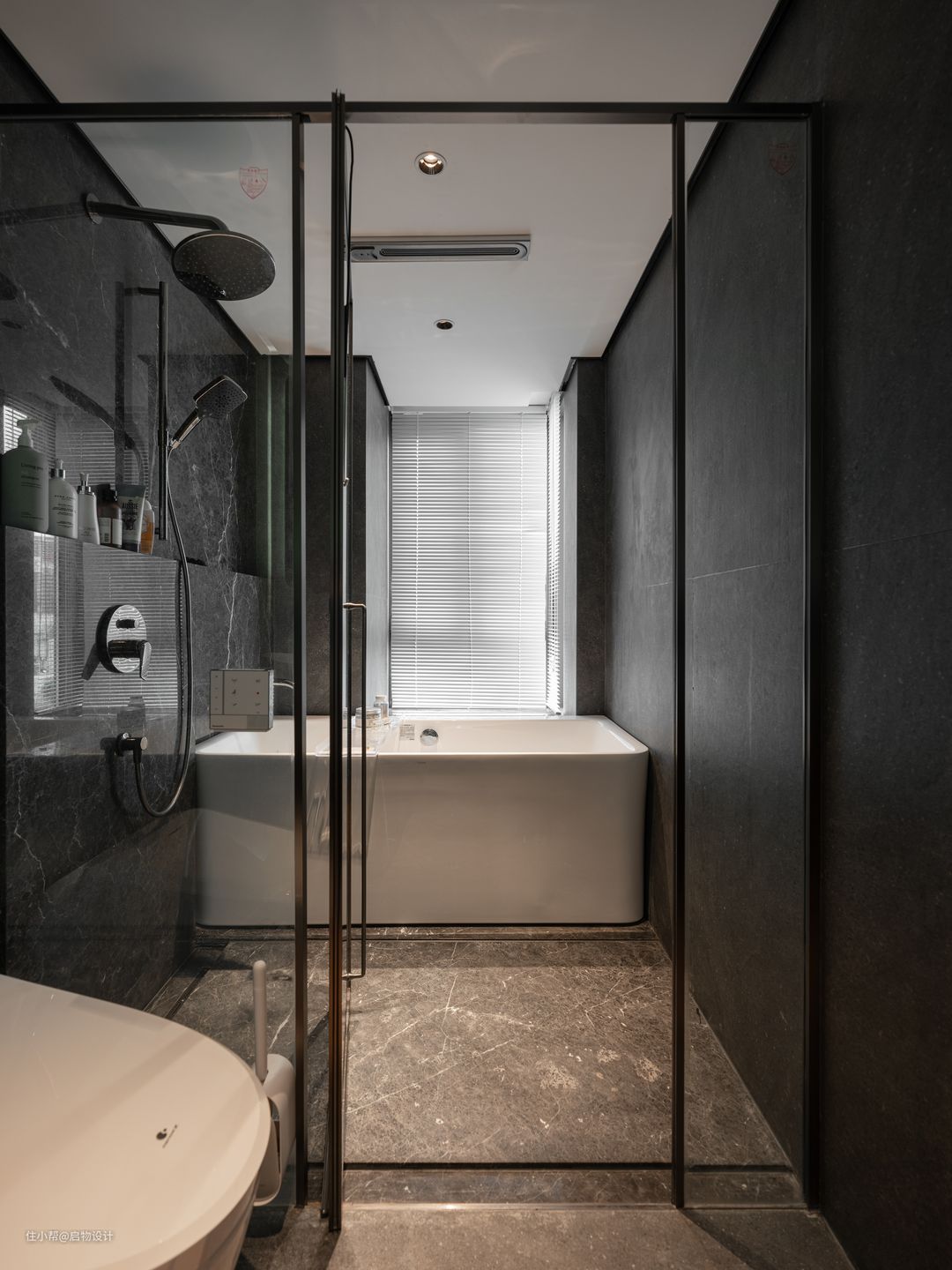 延续空间格调,简约大气的石材纹理铺陈高级灰个性卫浴,配备提升幸福感的洁具,尽显低奢雅致生活。