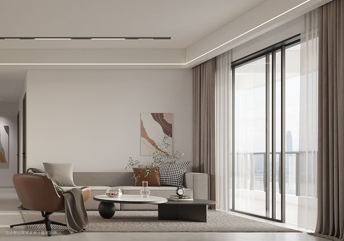 1、天花板使用线灯它的光源非常柔和、功耗低、节能环保,同时线灯比较小使用方便保证了整体的美感。 2、无主灯设计让顶面更加简洁干净,视觉上显得层高更高、光源独立、照明无死角;可以根据需求进行个性化控制,比如调整灯光亮度、颜色等,让你的空间更加舒适。