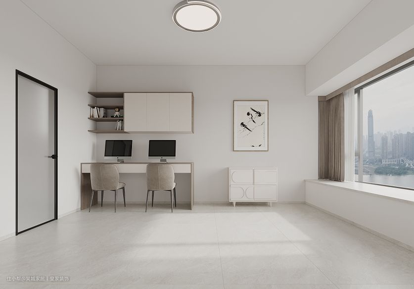 放置双人办公桌可以增加劳动效率,以在保持更好的隐私的同时,更好地管理办公时间;悬浮收纳格给人一种向上的层次感,有效避免了对地面空间的堆积。