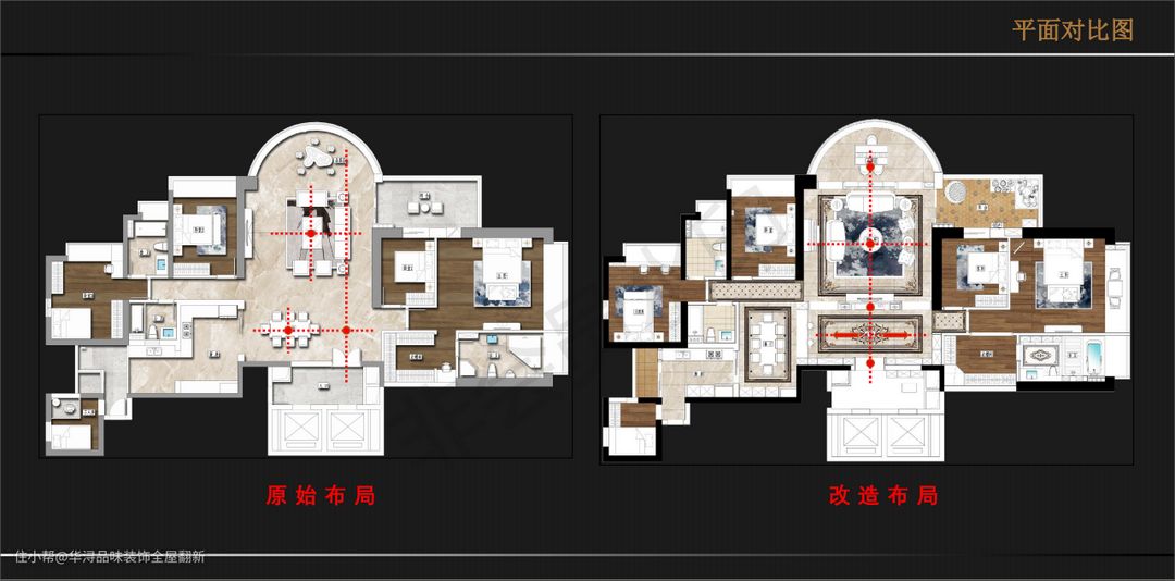 家的整体格调是多元化的混搭和艺术性的呈现,简欧风格的硬装设计搭配轻奢软装配饰,打造如《了不起的盖茨比》一般的奢华与魅力,呈现出高端、精致、舒适的生活方式。 设计亮点: 1、将原有布局重新规划,以大门为中轴线,整个平面布局规整大气。 2、增设玄关区域,增加室内空间的私密性。 3、调整厨房与生活阳台布局,将原本厨房位置改造为餐厅,空间利用更合理。
